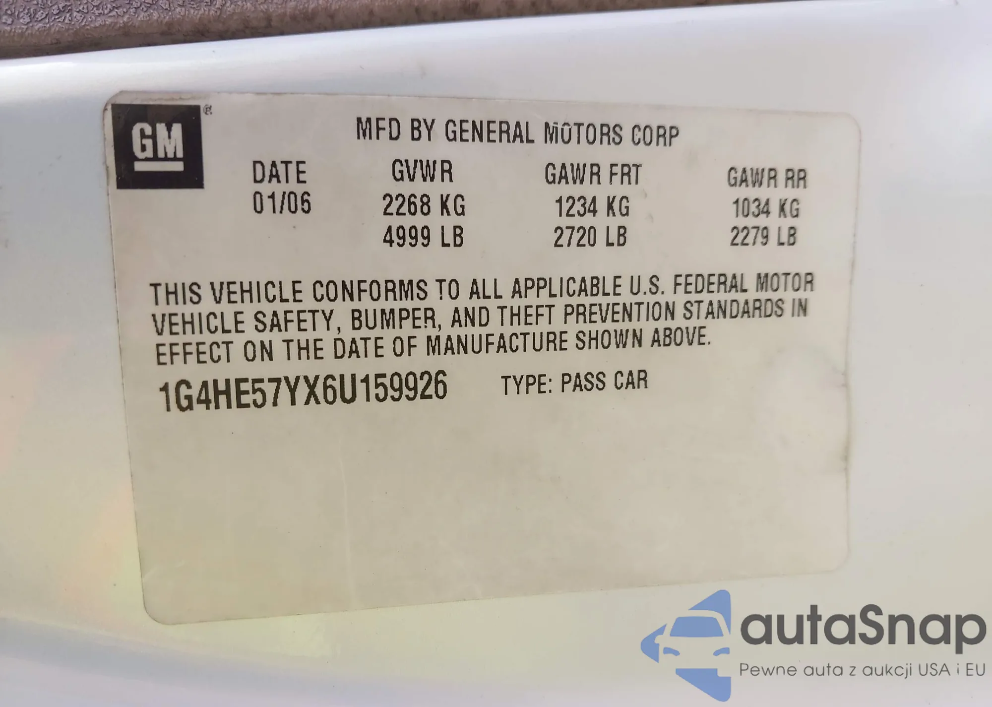 • VIN 1G4HE57YX6U159926