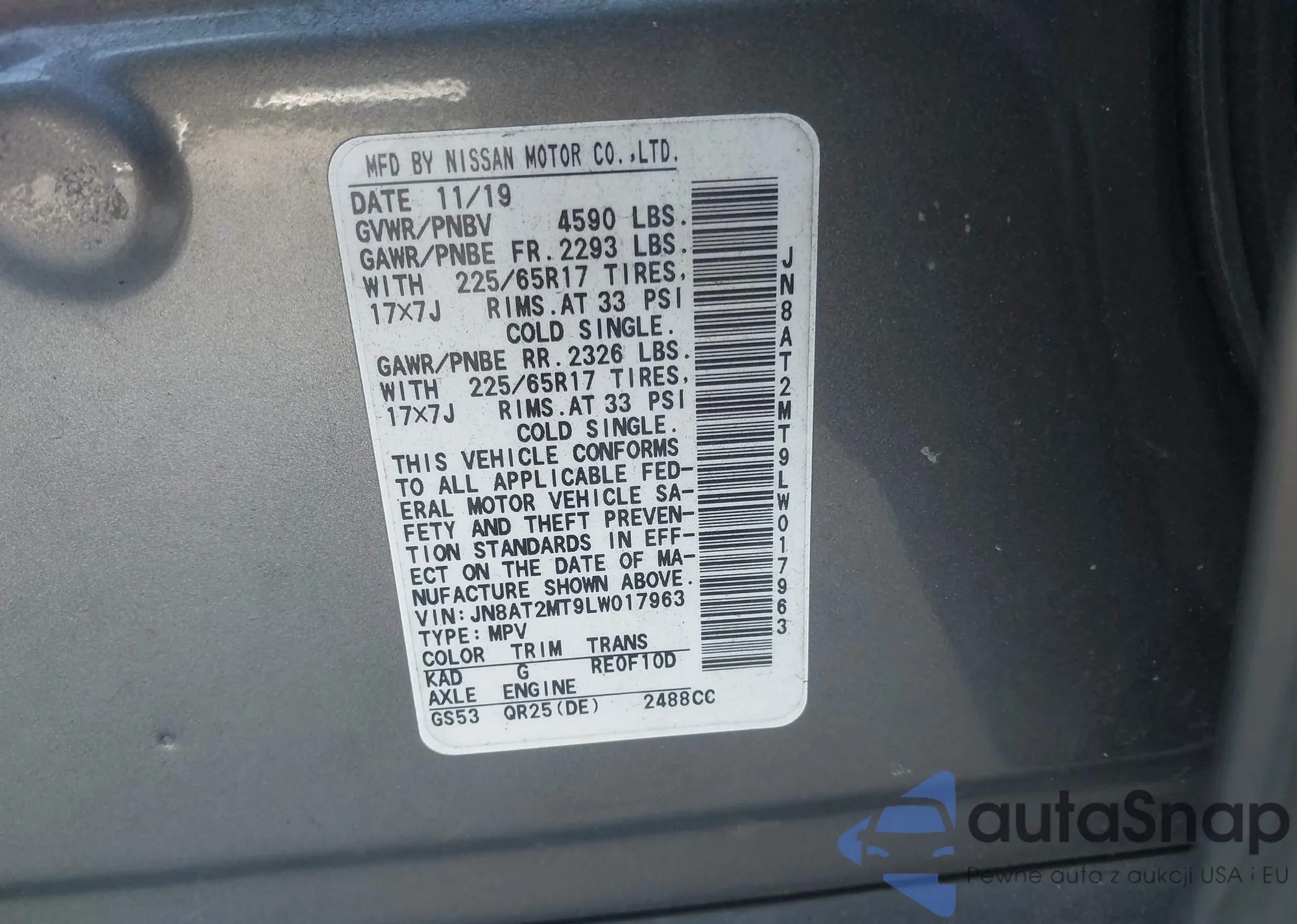 LOT: 42990817 VIN: JNKAY01E77M313782
