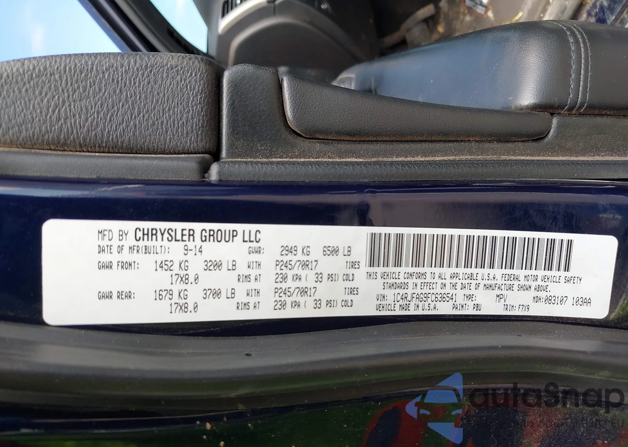 • VIN 1C4RJFAG9FC636541