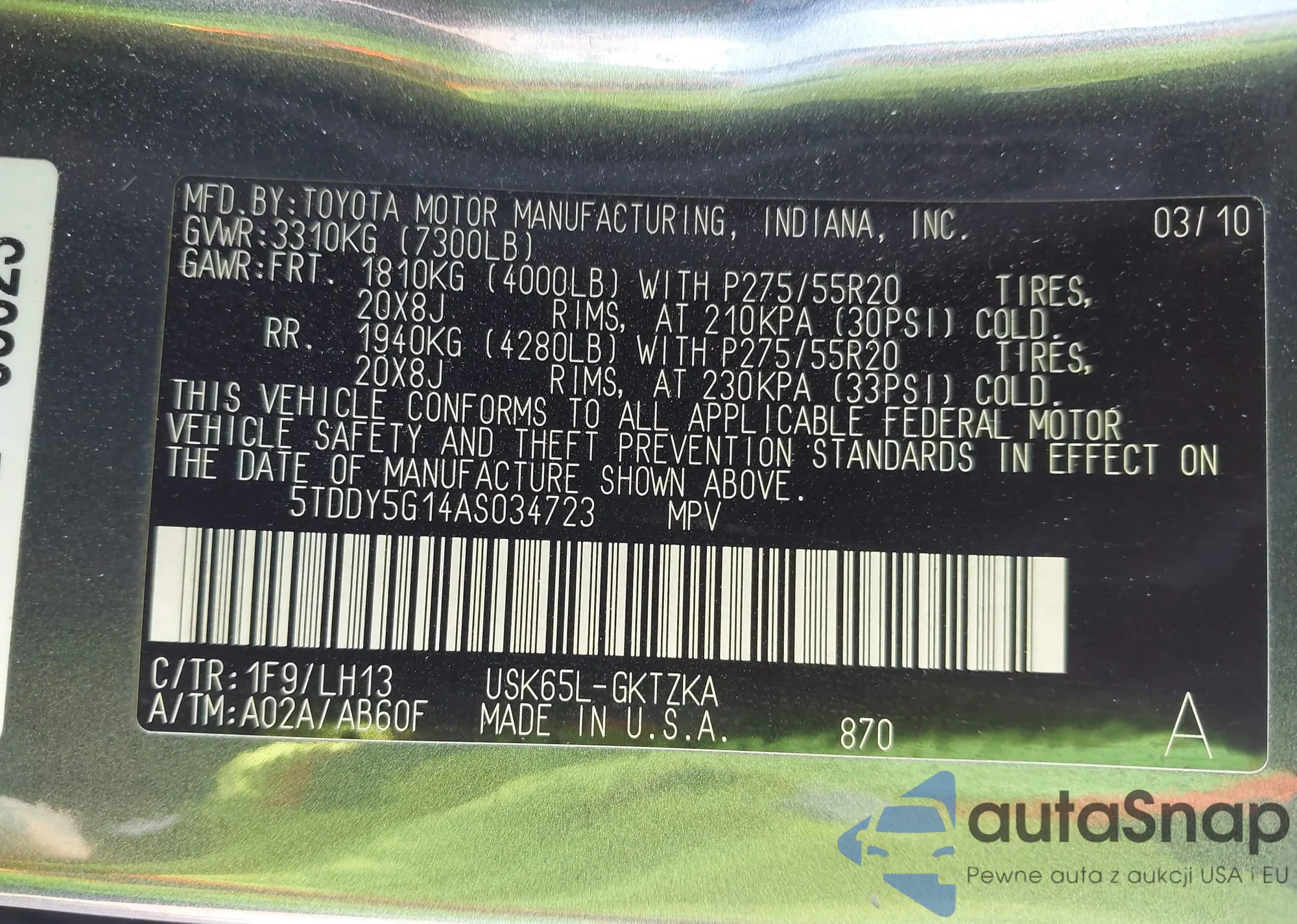 LOT: 43521650 VIN: WA1EV74L58D044594