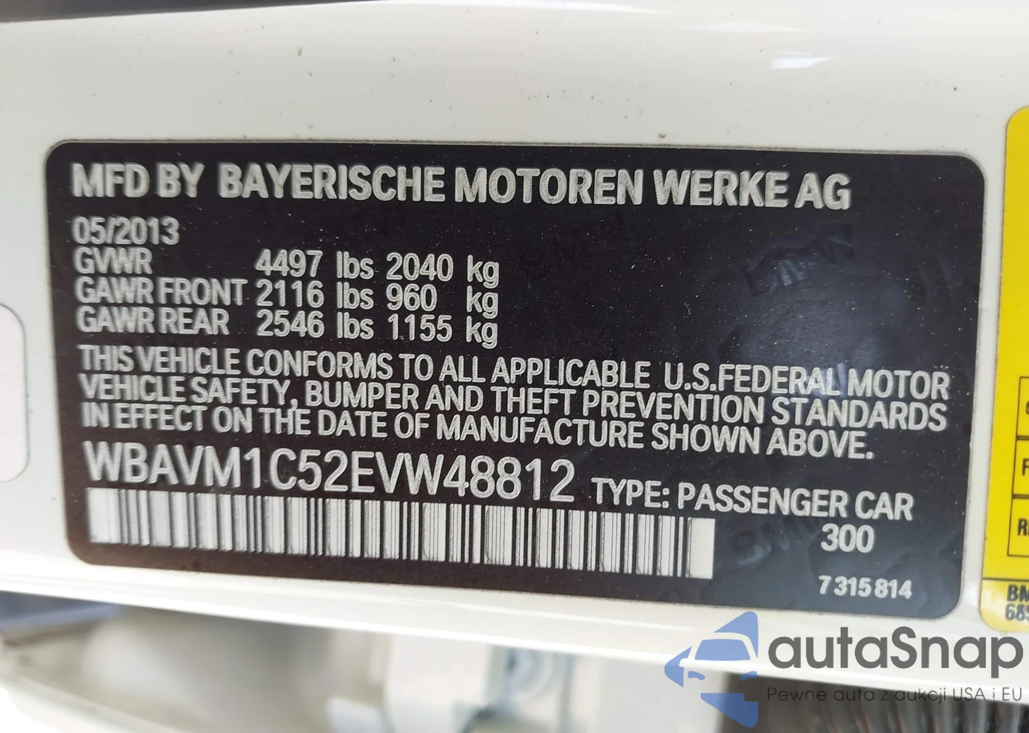 • VIN WBAVM1C52EVW48812
