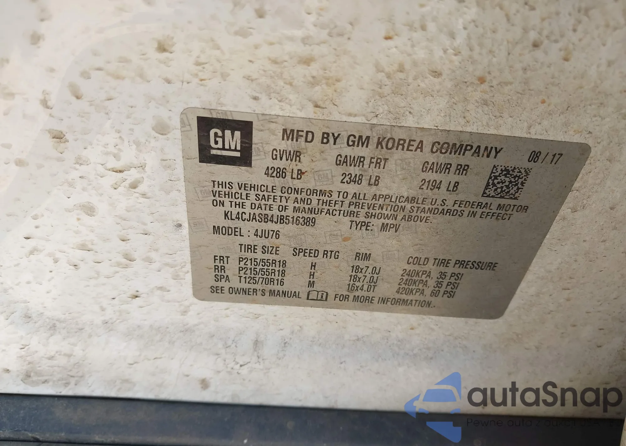 • VIN KL4CJASB4JB516389