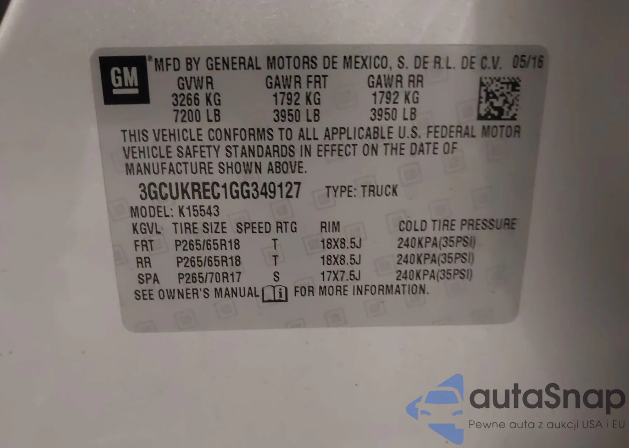 LOT: 42820991 VIN: 3GCUKREC1GG349127