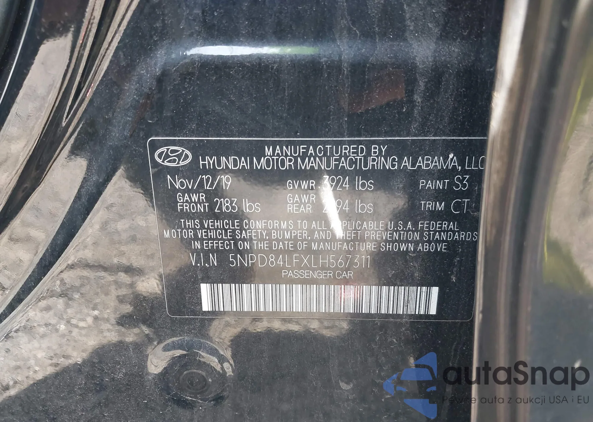 • VIN 5NPD84LFXLH567311