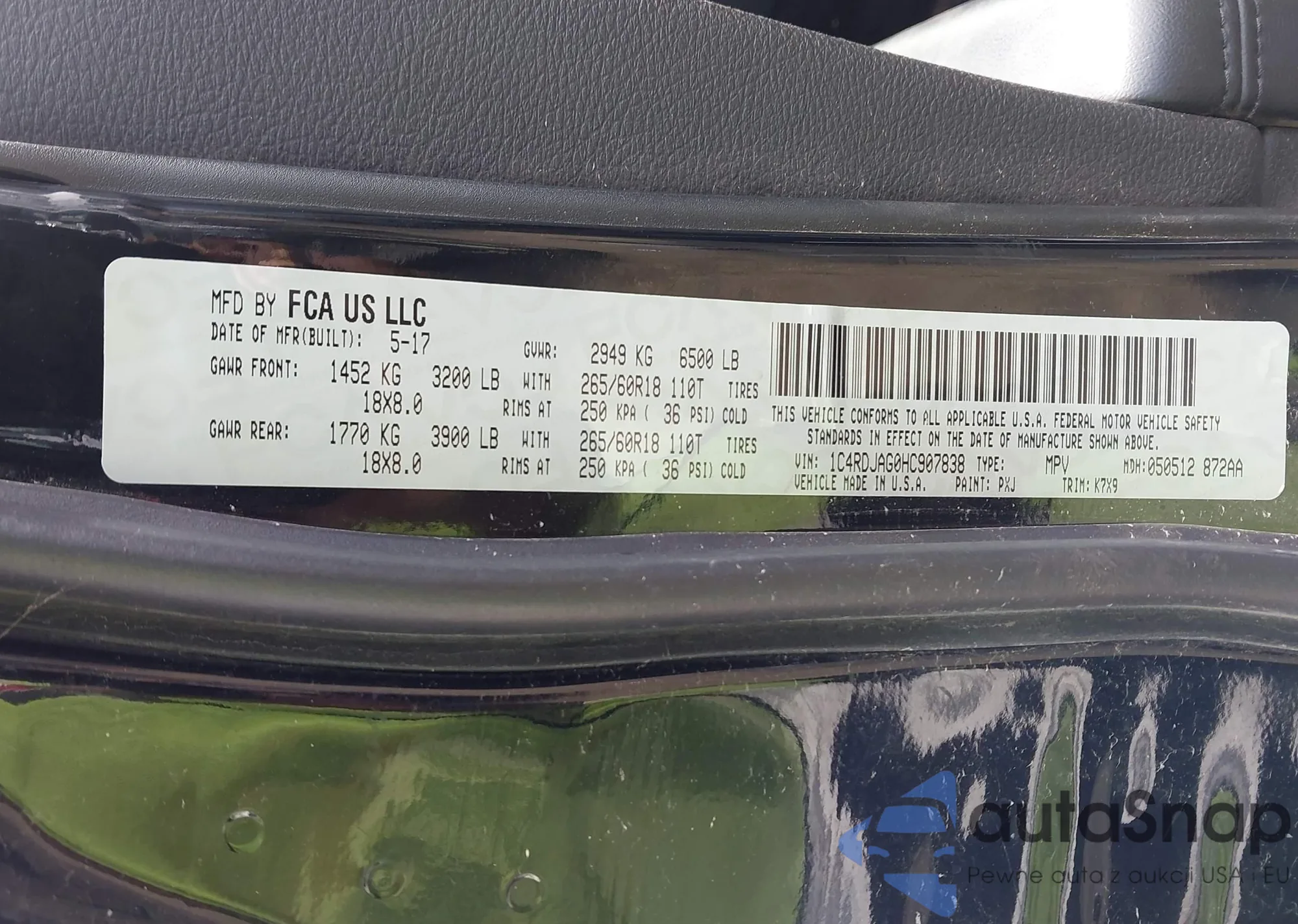 • VIN 1C4RDJAG0HC907838