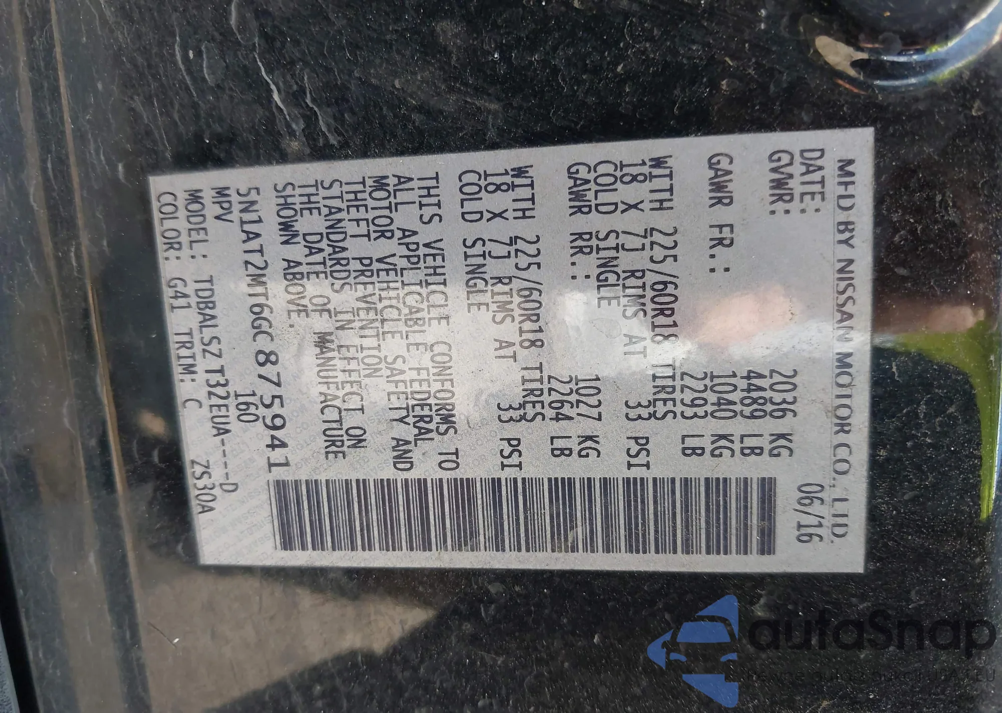 • VIN 5N1AT2MT6GC875941