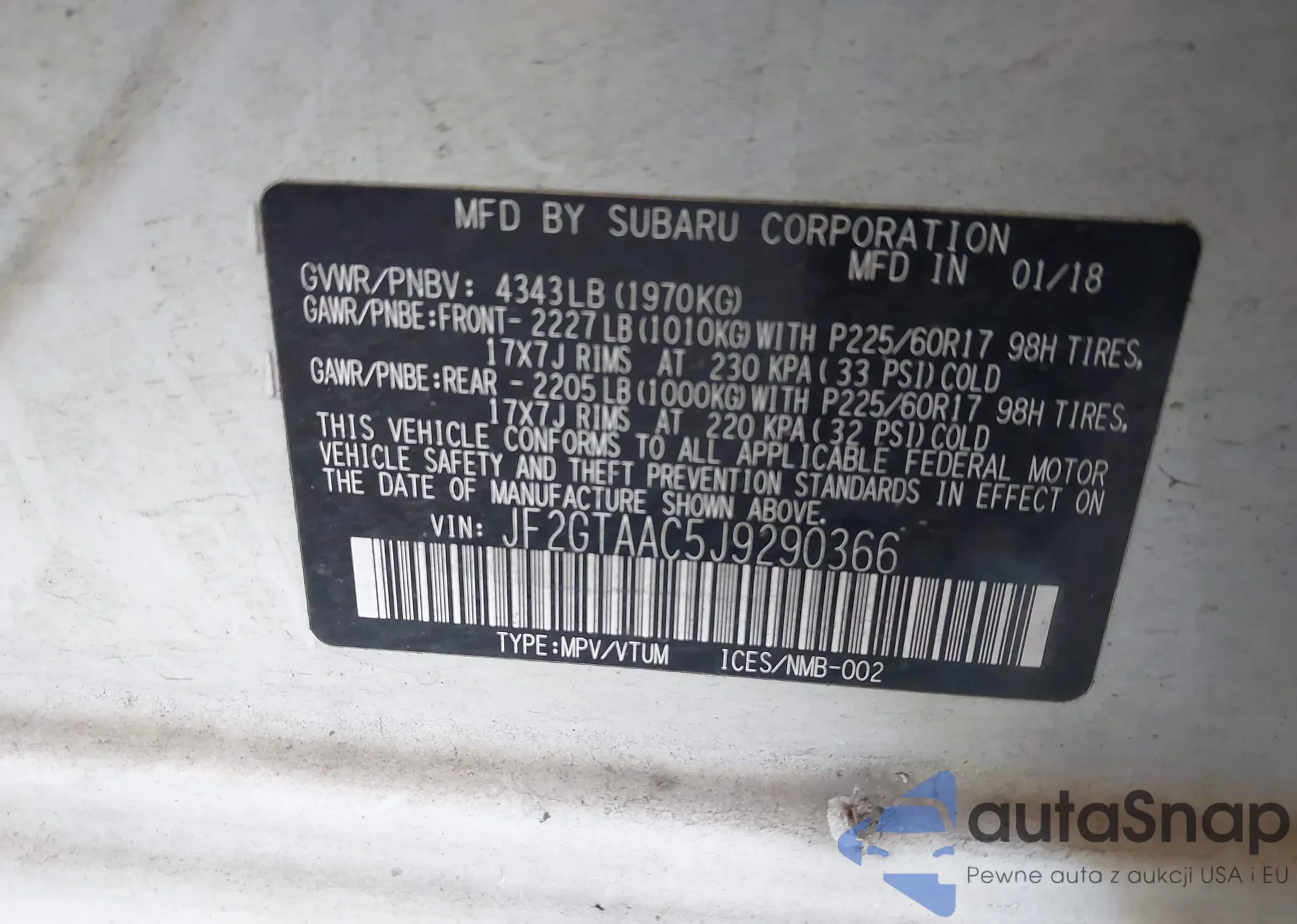 LOT: 42956190 VIN: JF2SJARC4JH461344
