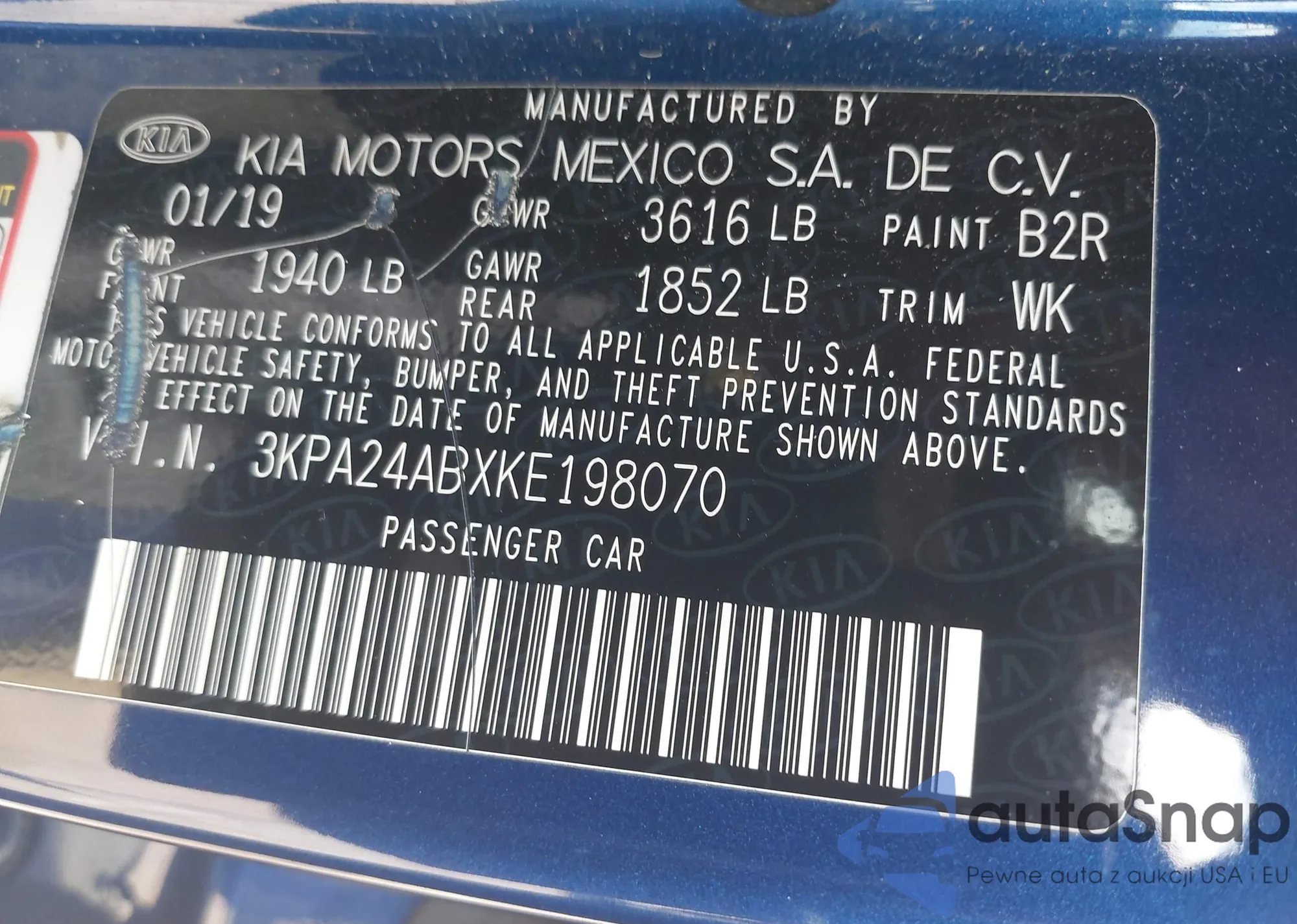 LOT: 43056135 VIN: KMHD84LF6KU738085