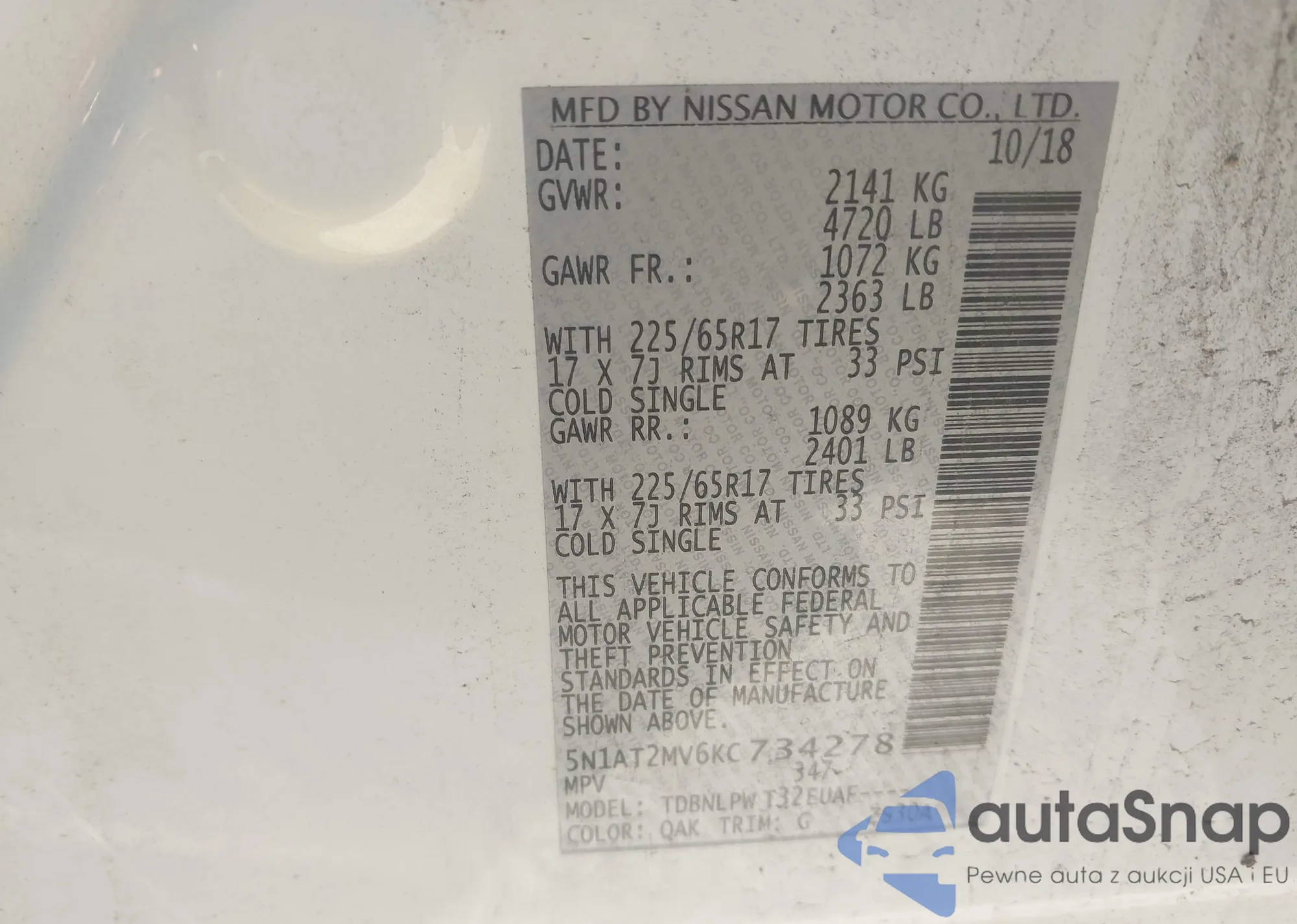 • VIN 1C4RJKAG2R8917838