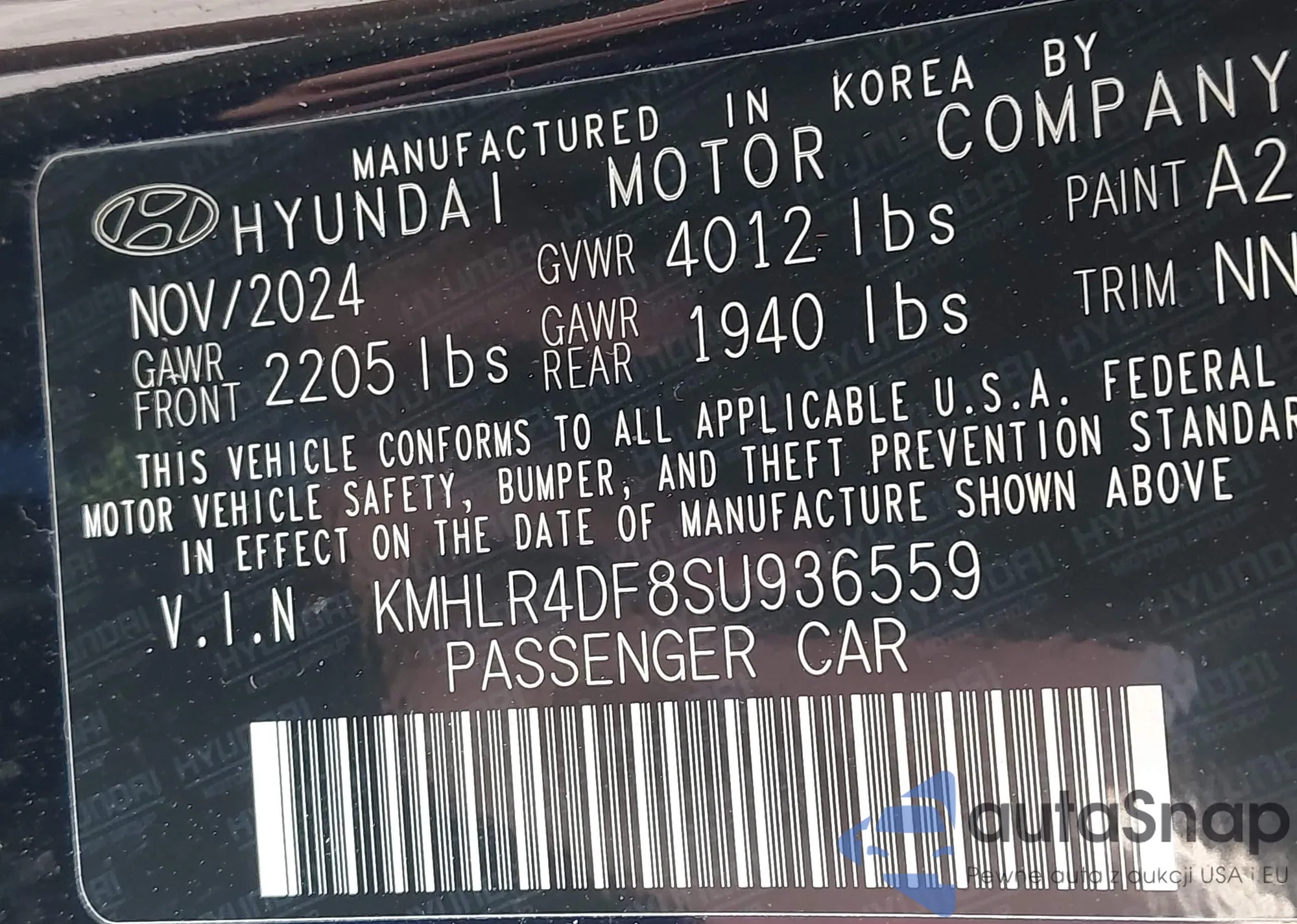 • VIN KMHLR4DF8SU936559