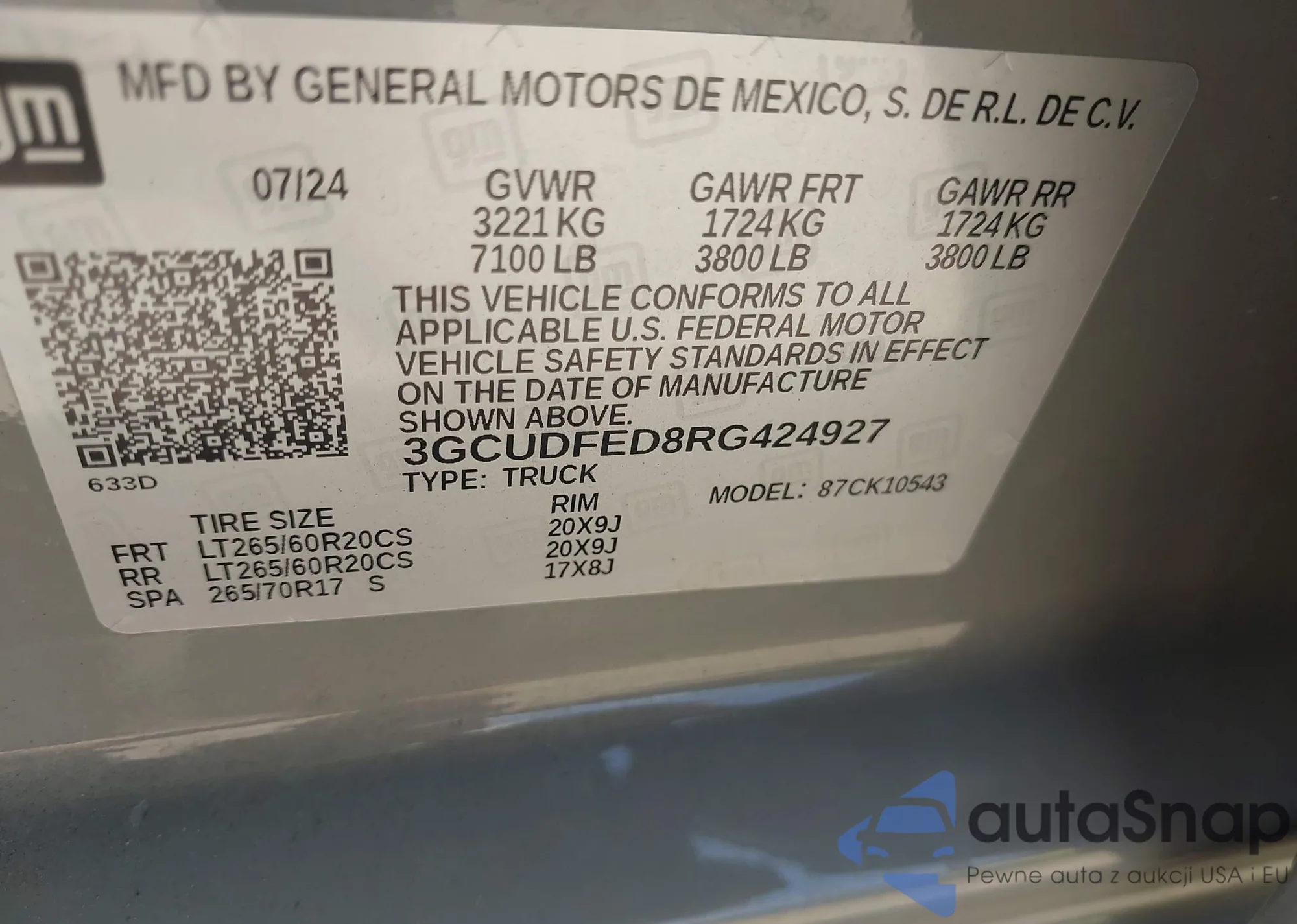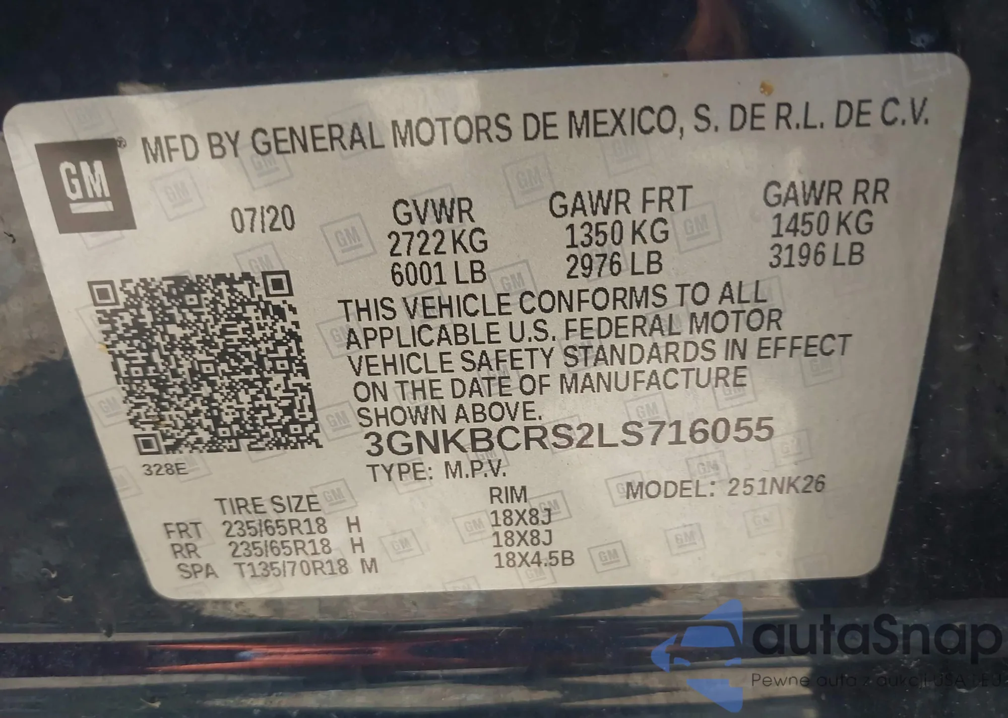 LOT: 43137097 VIN: 3GNKBCRS2LS716055