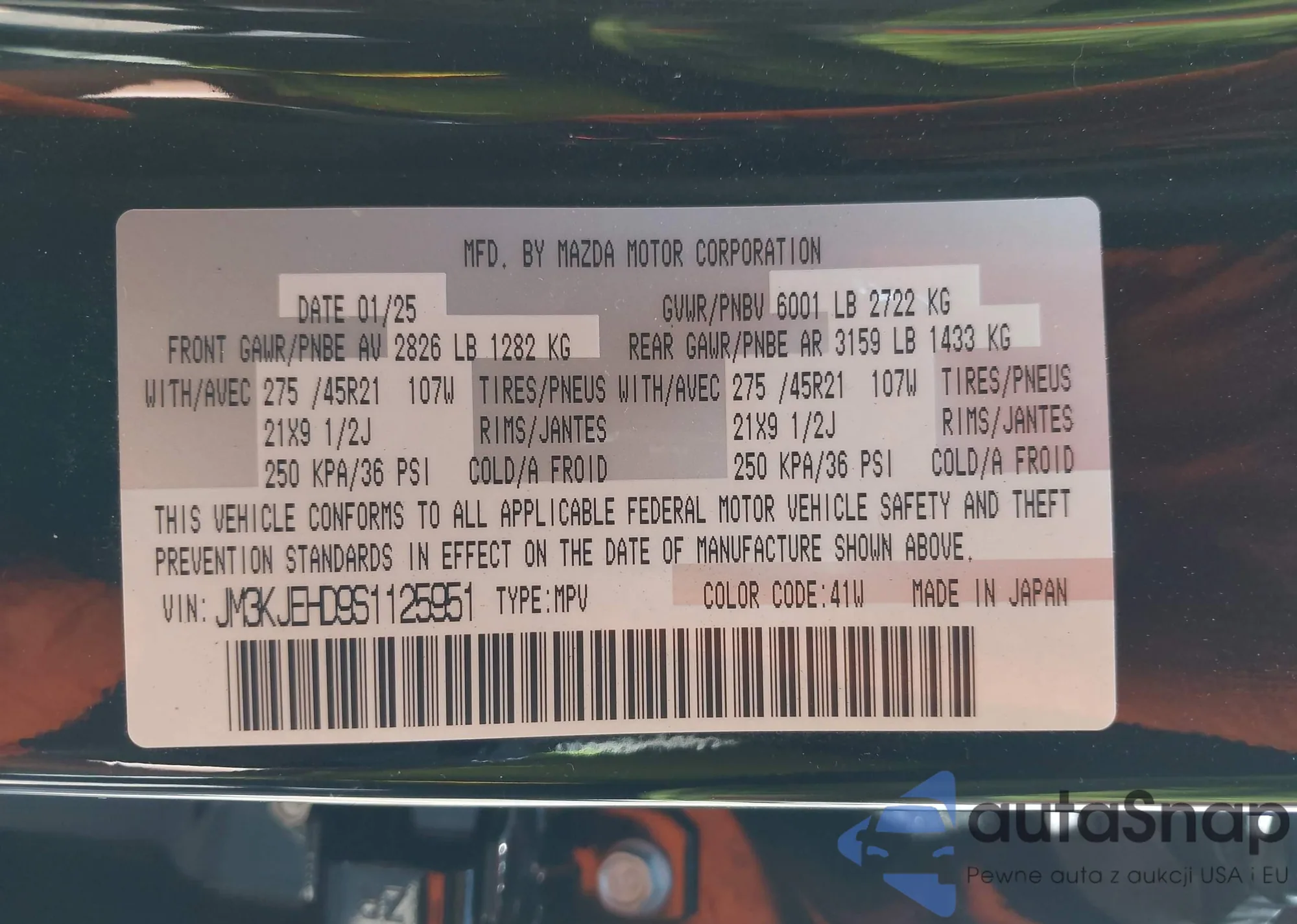 LOT: 43127913 VIN: JM3KJEHD9S1125951