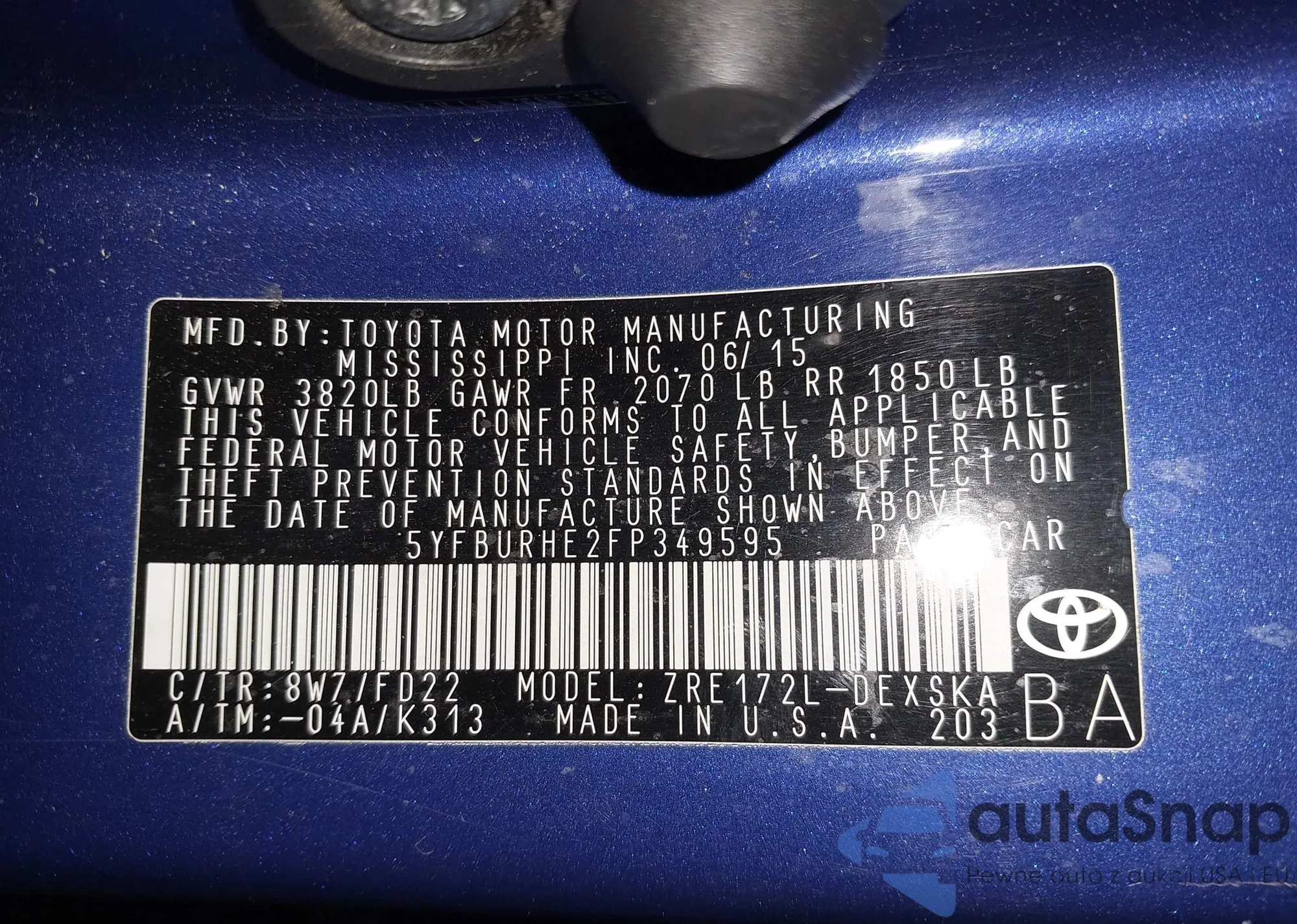 • VIN 5YFBURHE2FP349595