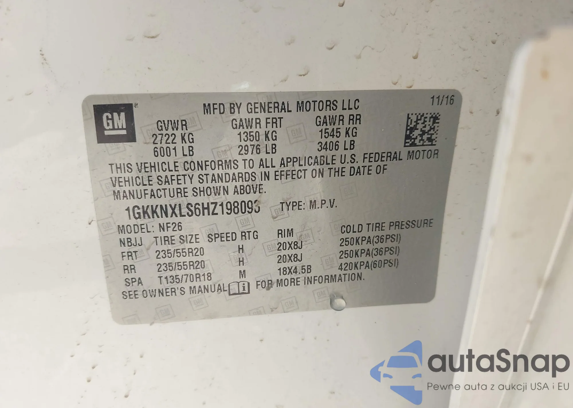 LOT: 43135644 VIN: 1GKKNXLS6HZ198093