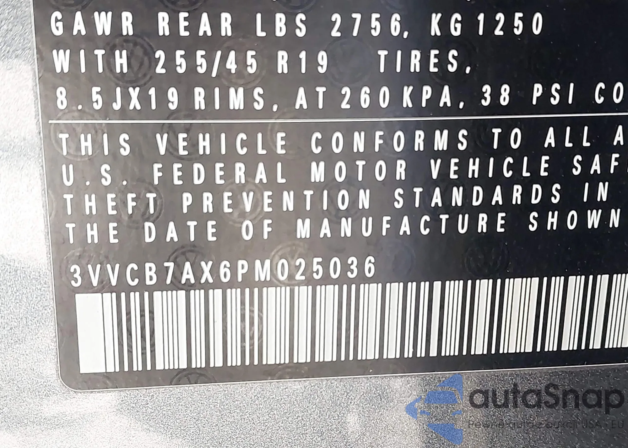 • VIN 3VVCB7AX6PM025036