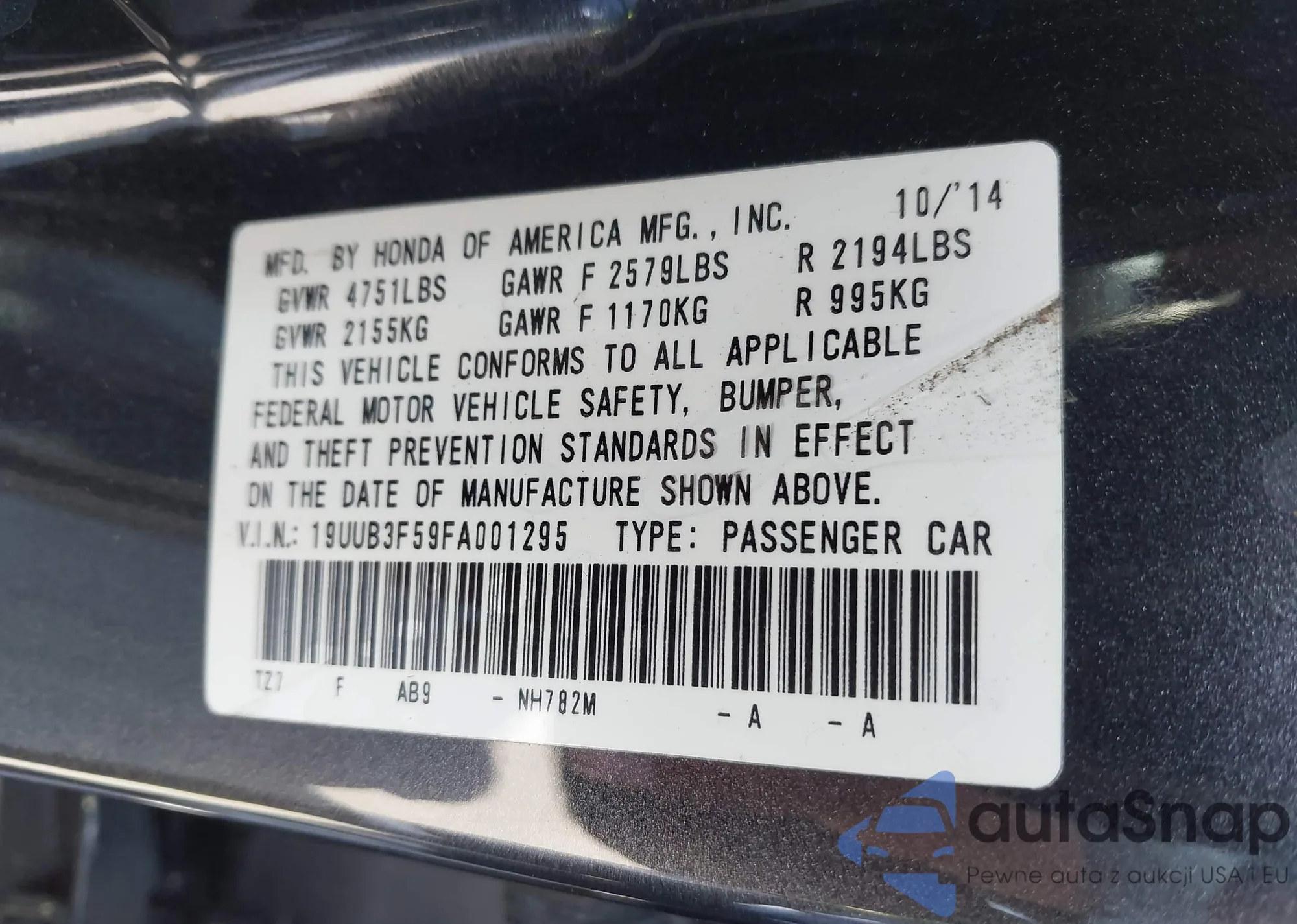 • VIN 19UUB3F59FA001295