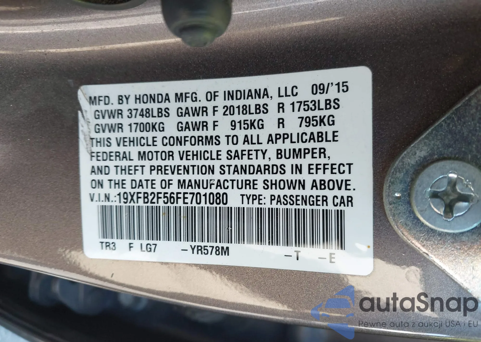• VIN 19XFB2F56FE701080