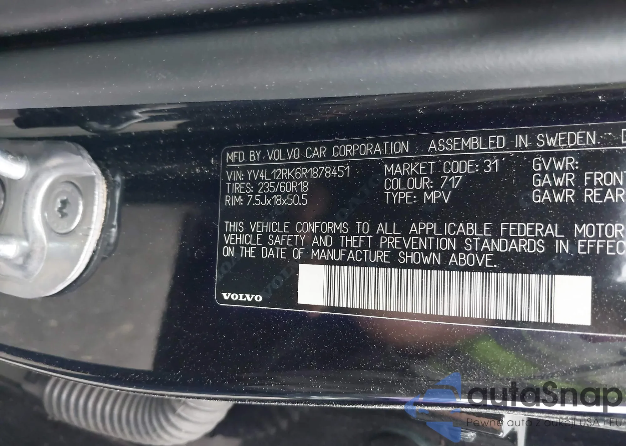 LOT: 43378051 VIN: YV4L12RK6R1878451