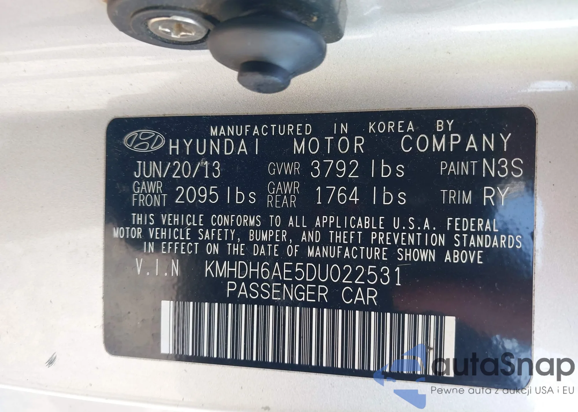 • VIN KMHDH6AE5DU022531