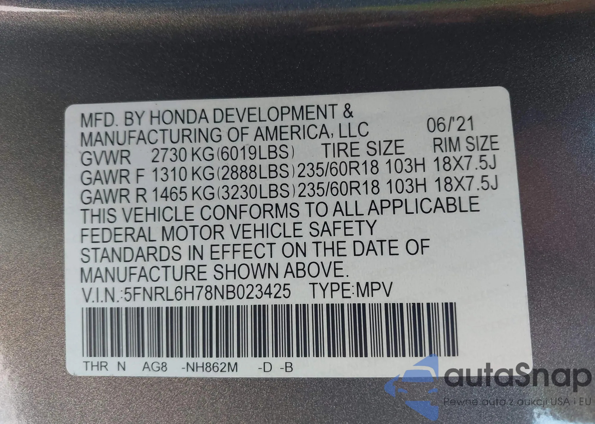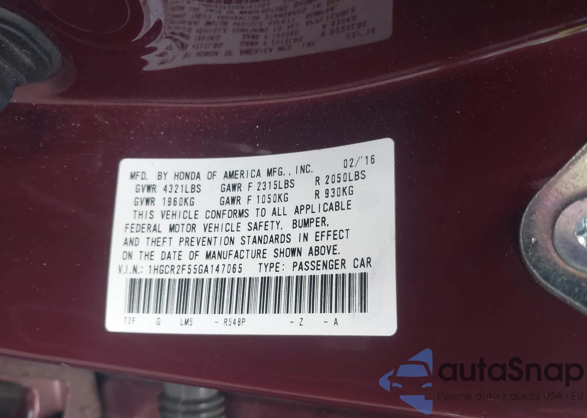 • VIN 1HGCR2F55GA147065