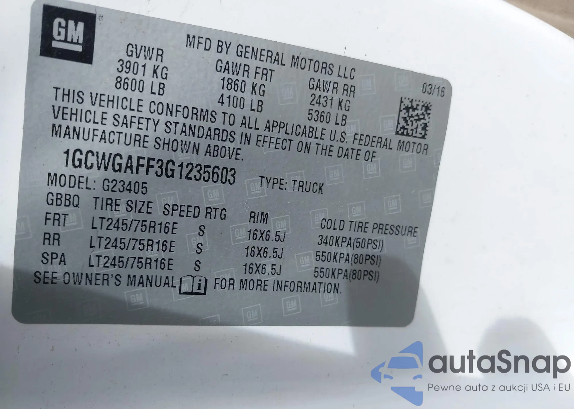 • VIN 1GCWGAFF3G1235603