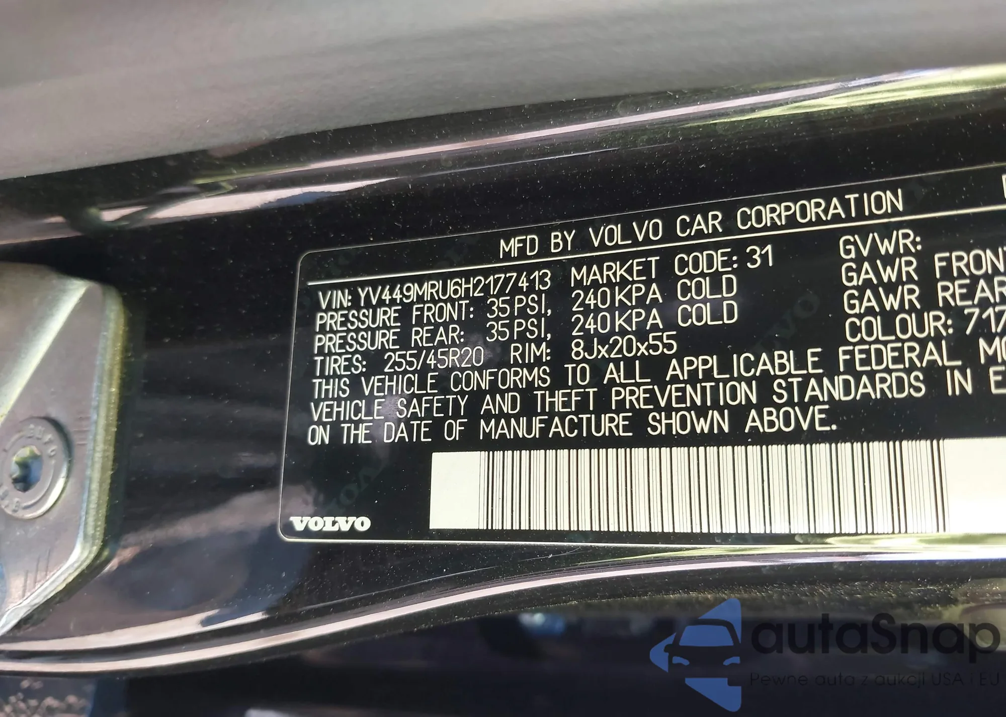 • VIN YV449MRU6H2177413