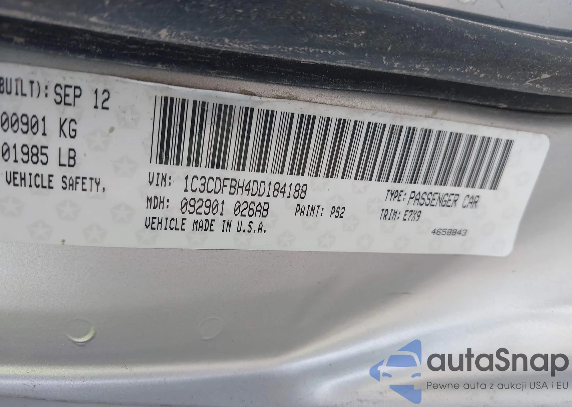 LOT: 42348765 VIN: 1C3CDFBH4DD184188