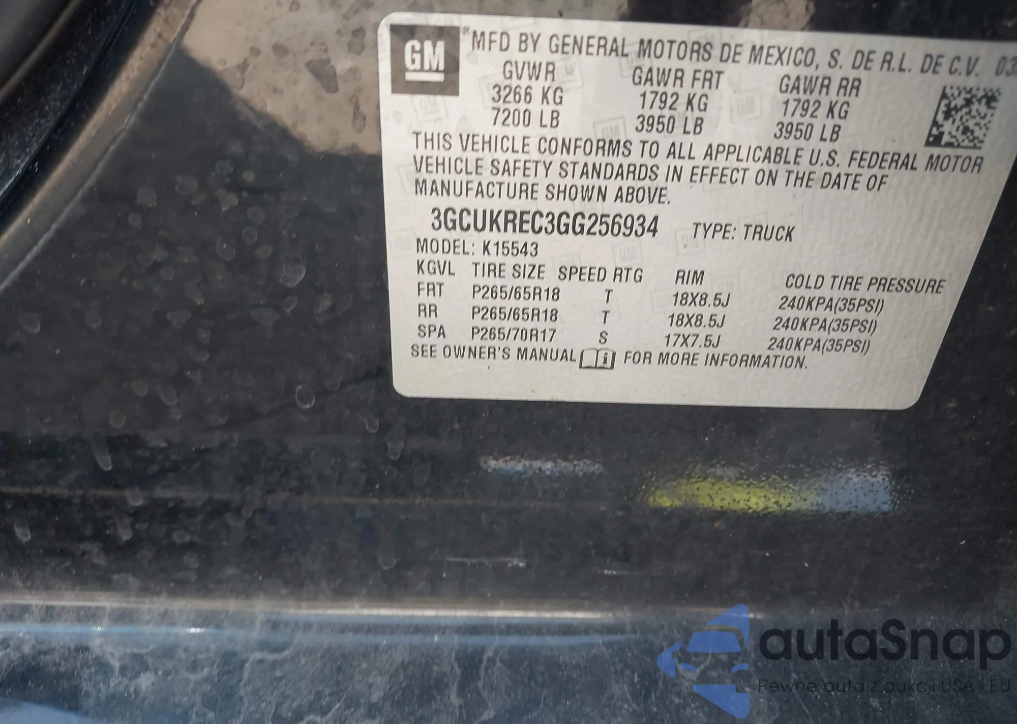 • VIN 3GCUKREC3GG256934