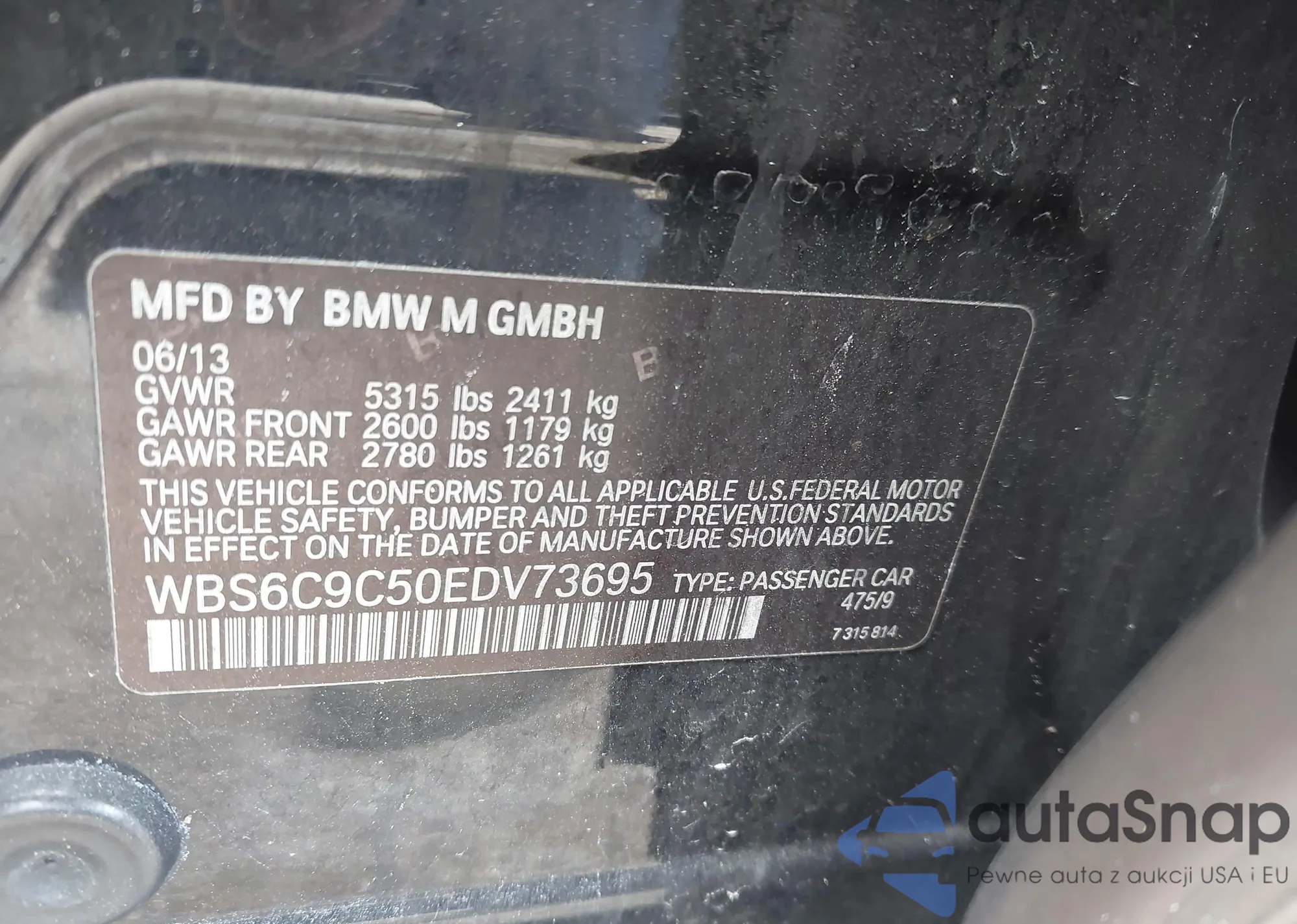 • VIN WBS6C9C50EDV73695