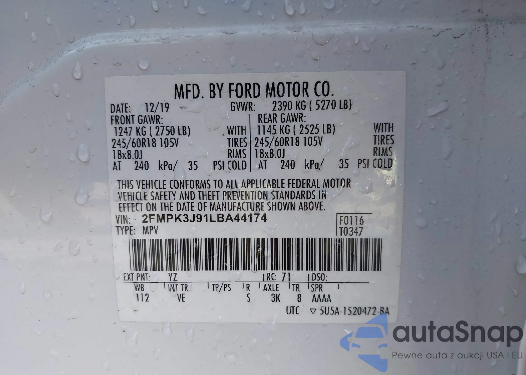 • VIN 2FMPK3J91LBA44174