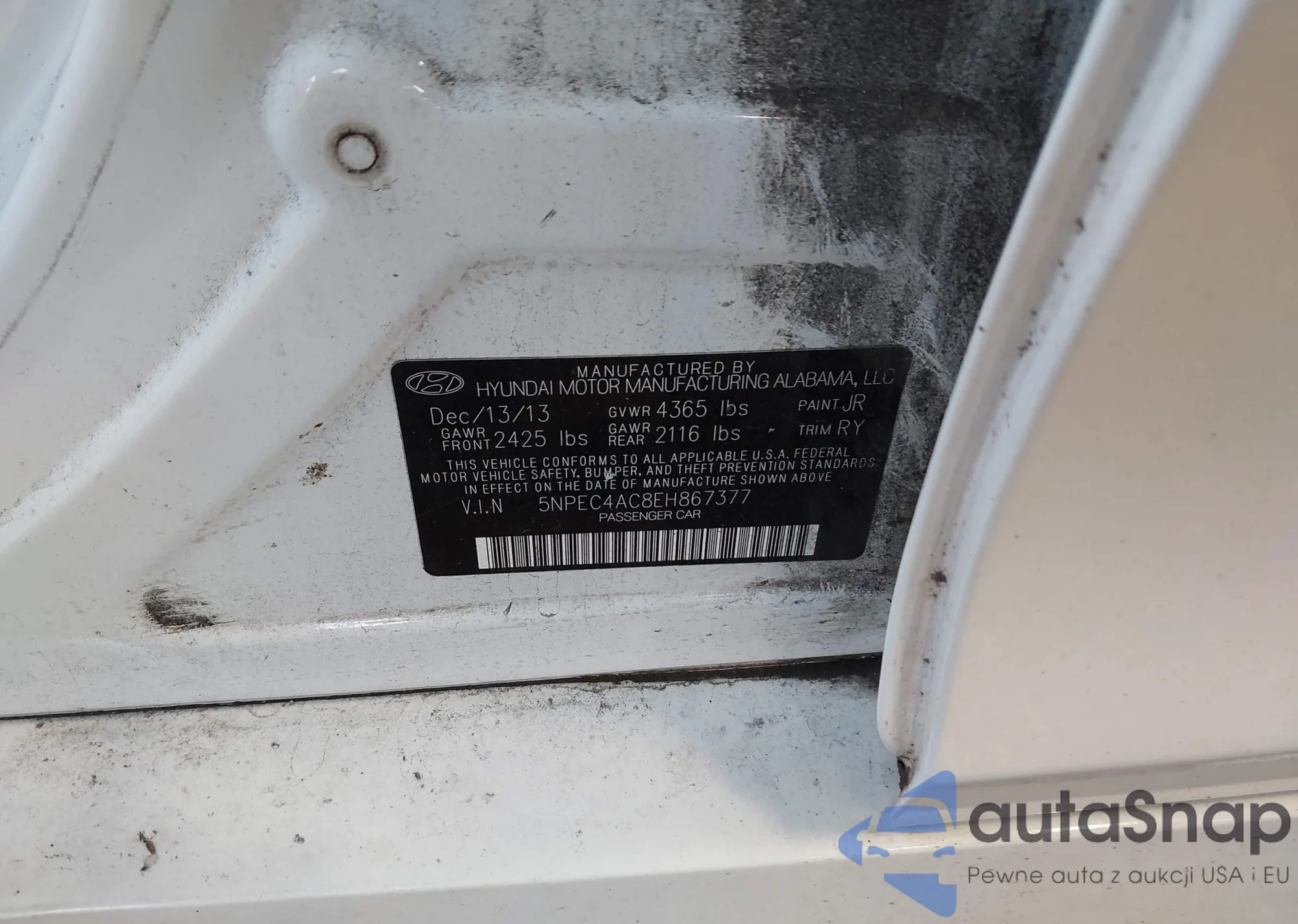 • VIN 5NPEC4AC8EH867377
