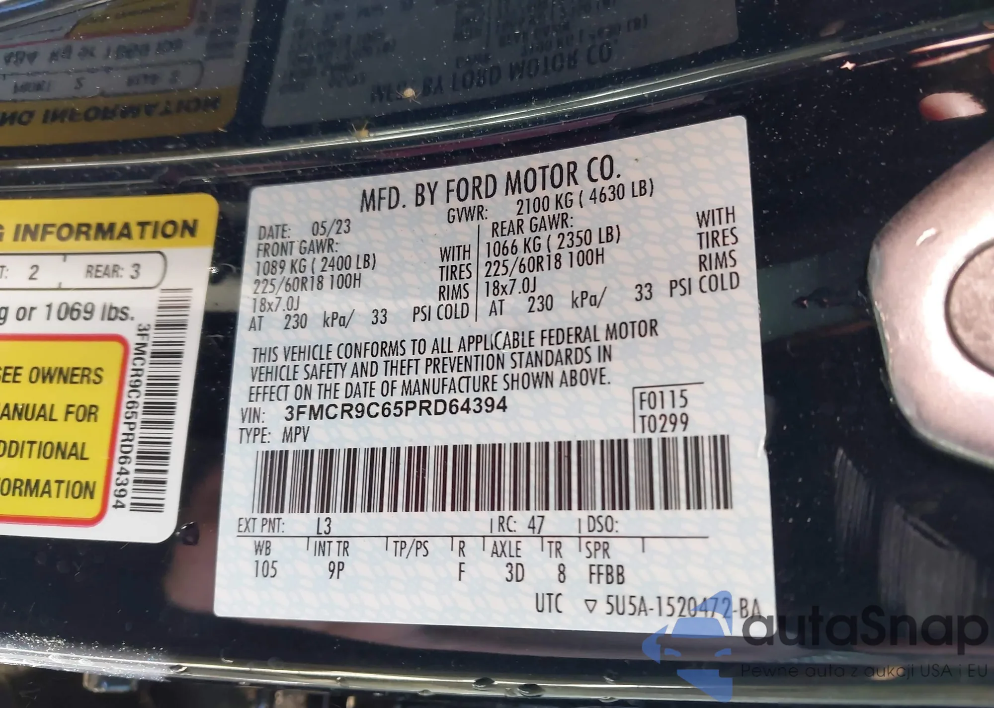 LOT: 43534194 VIN: 3FMCR9C65PRD64394
