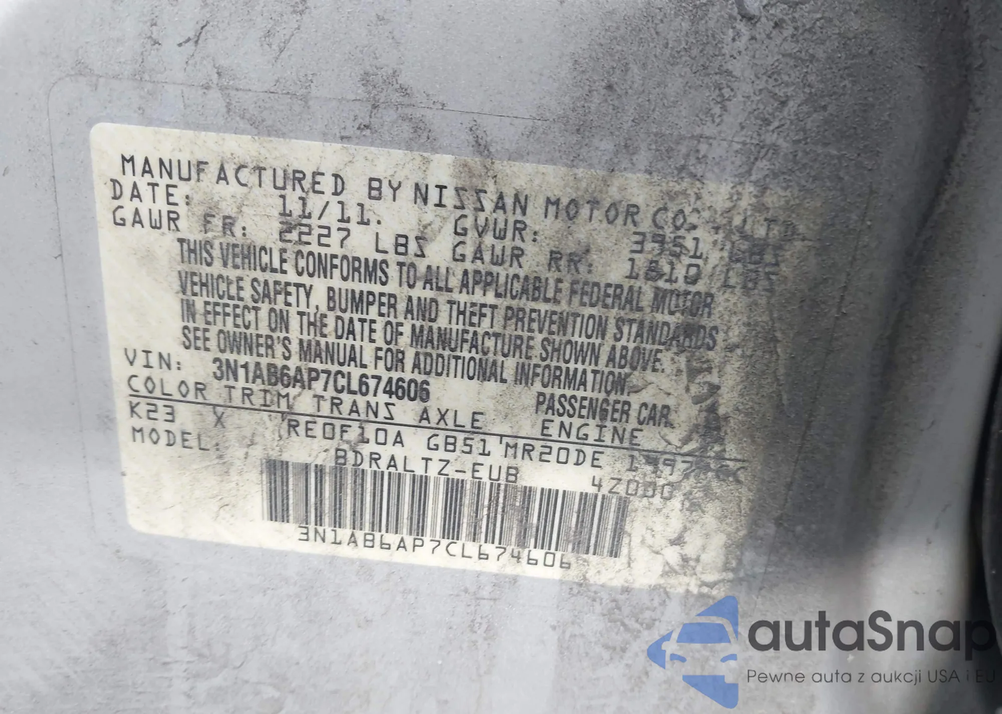 • VIN 3N1AB6AP7CL674606