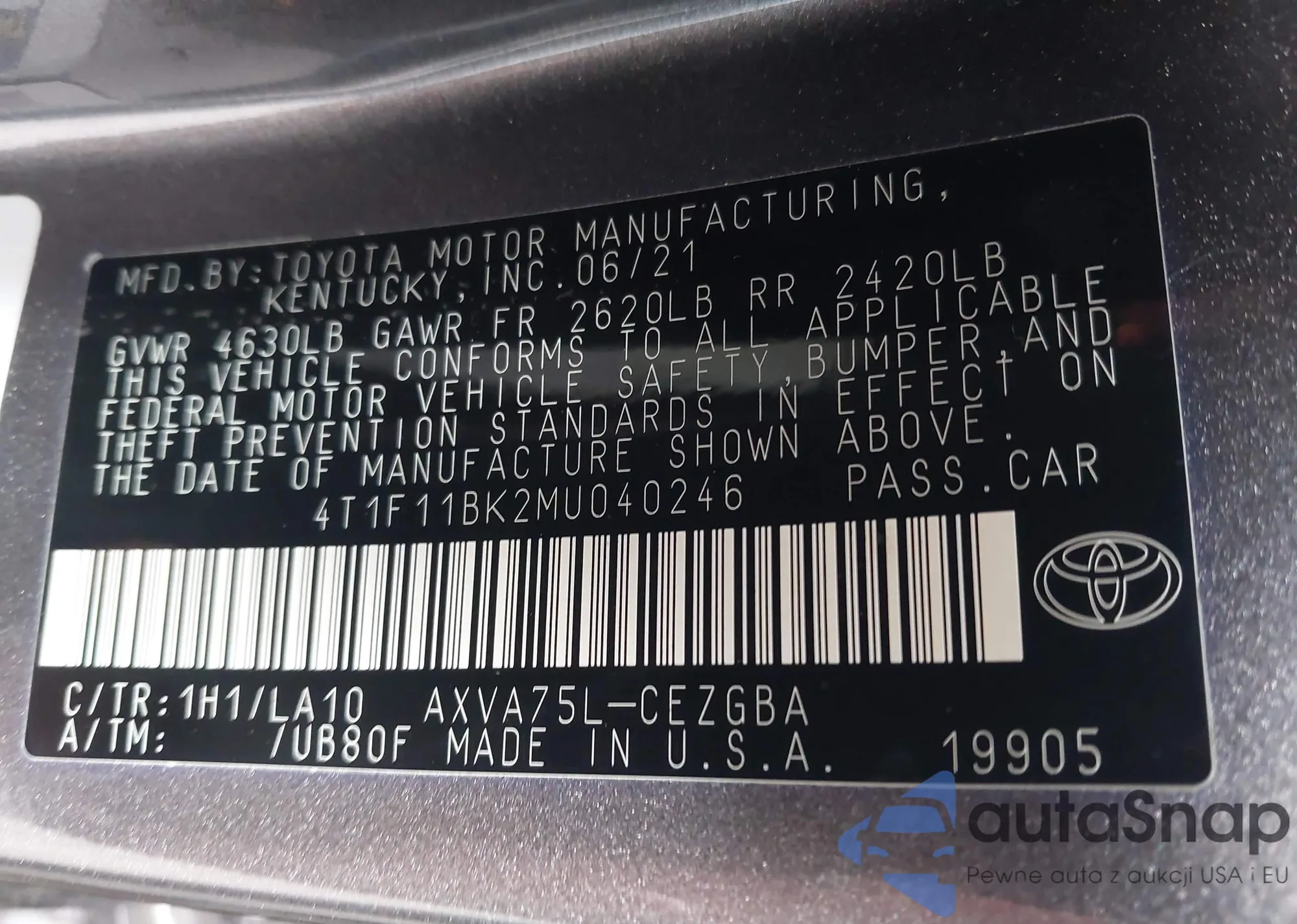 LOT: 43586413 VIN: 4T1F11BK2MU040246