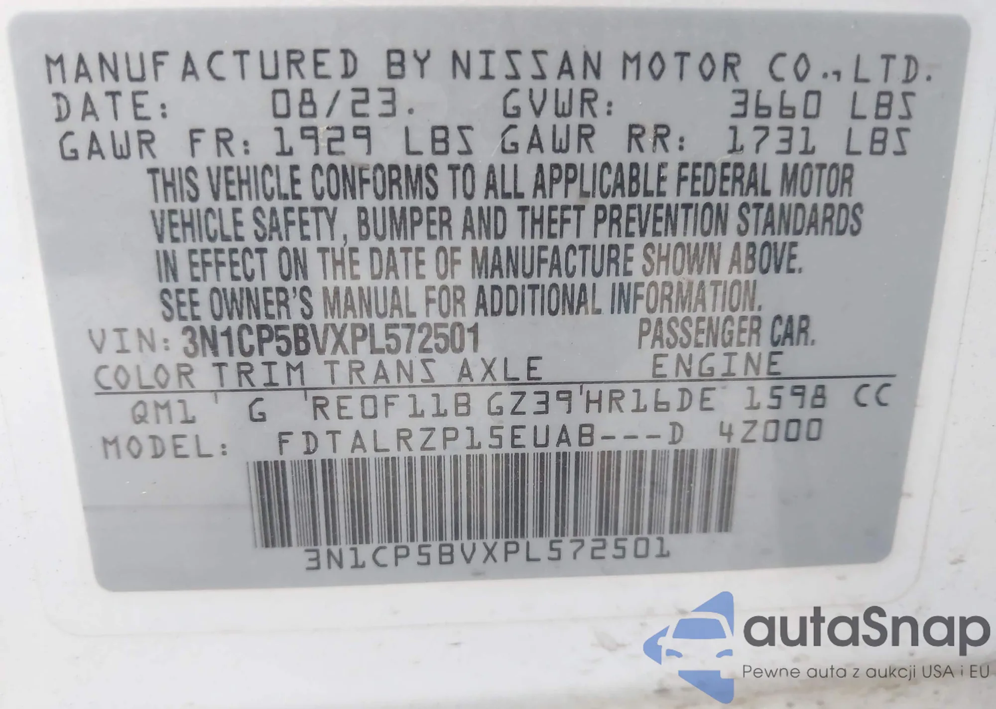 • VIN 3N1CP5BVXPL572501