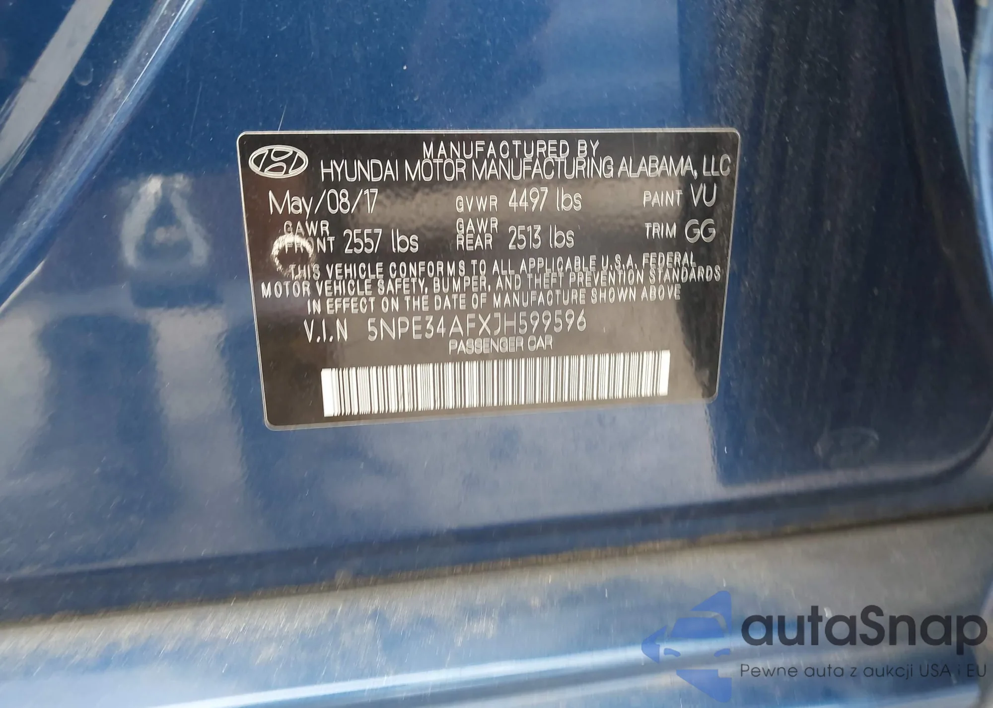 • VIN 5NPE34AFXJH599596