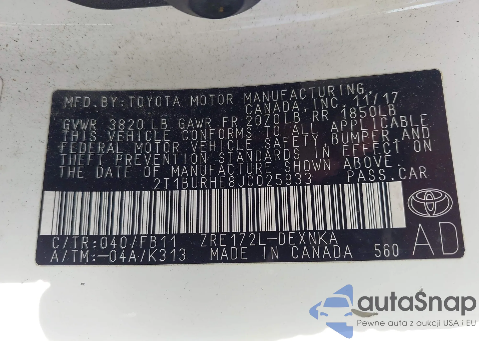 LOT: 43305936 VIN: 2T3K1RFV2SW385086