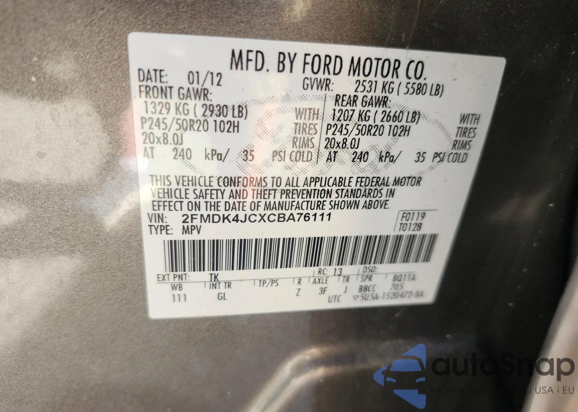 • VIN KL4CJASBXKB832140