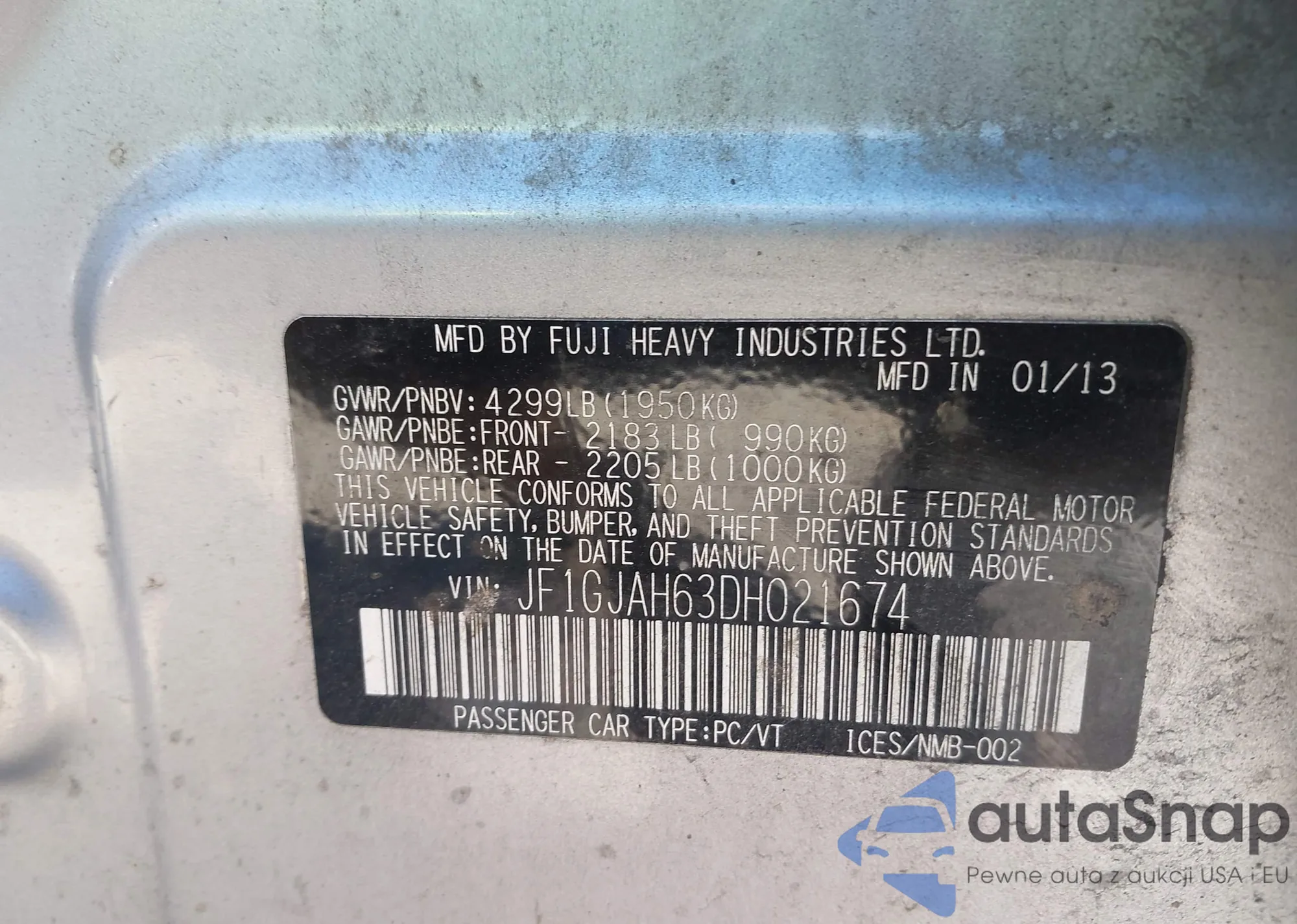 • VIN JF1GJAH63DH021674