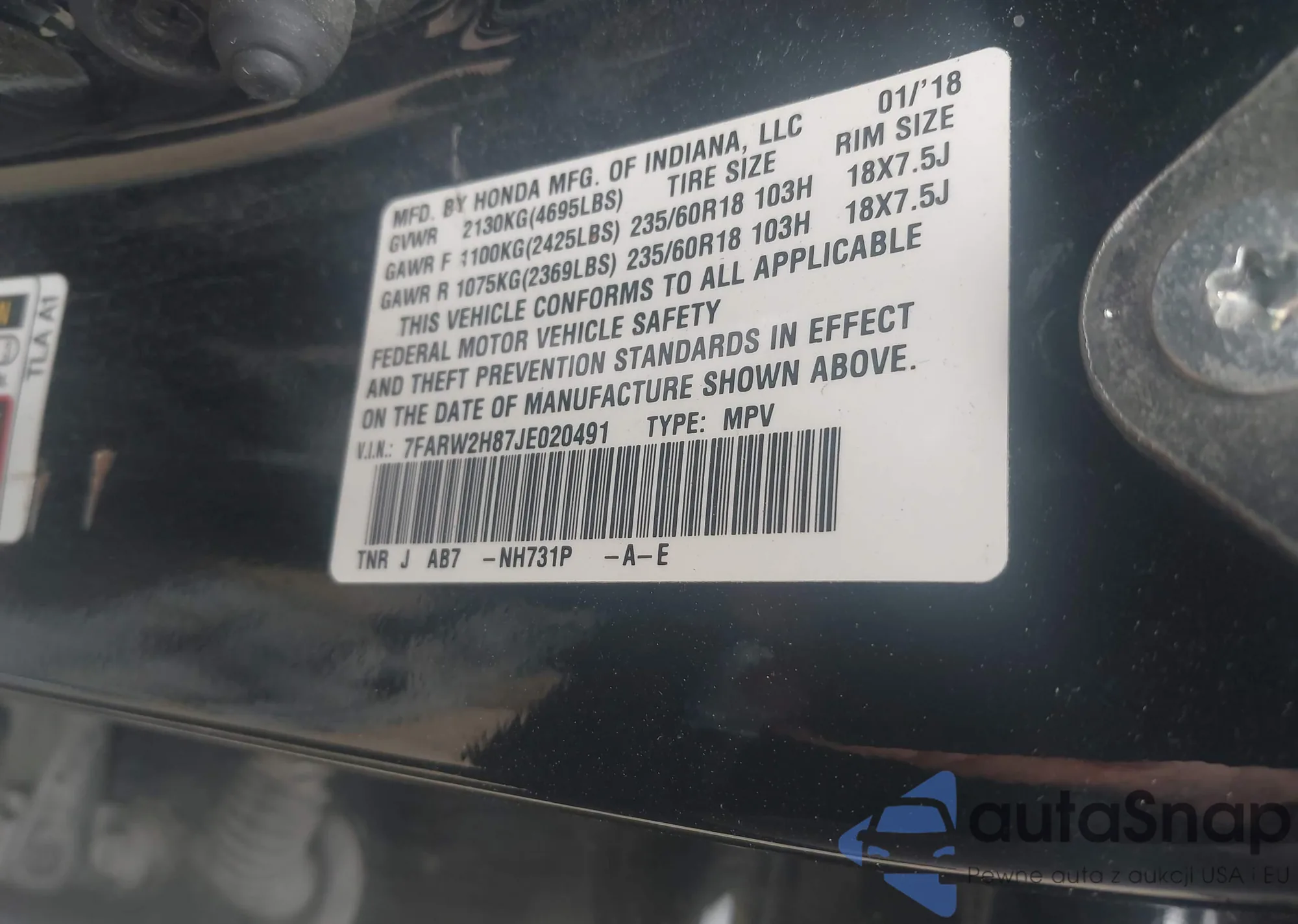• VIN 7FARW2H87JE020491