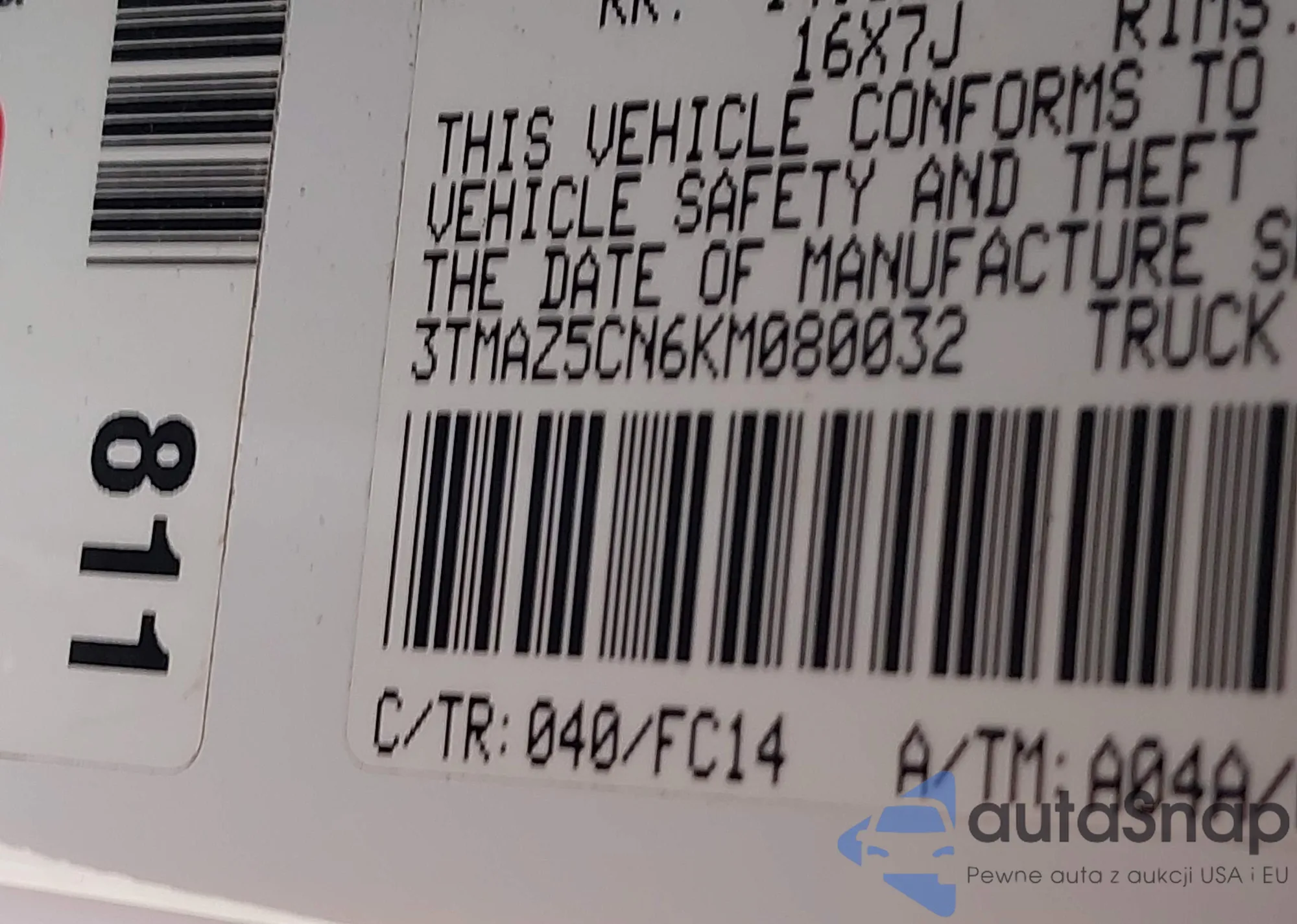 • VIN 3TMAZ5CN6KM080032