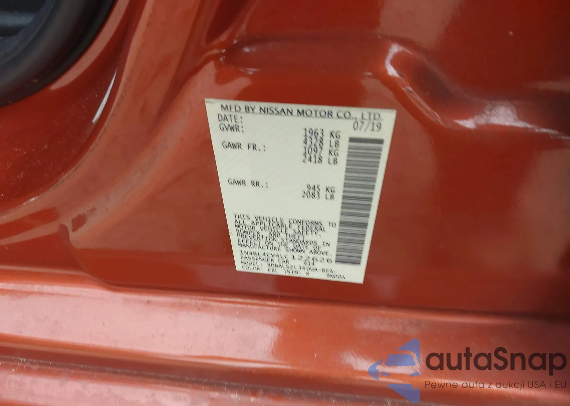 • VIN 1N4BL4CV4LC122626
