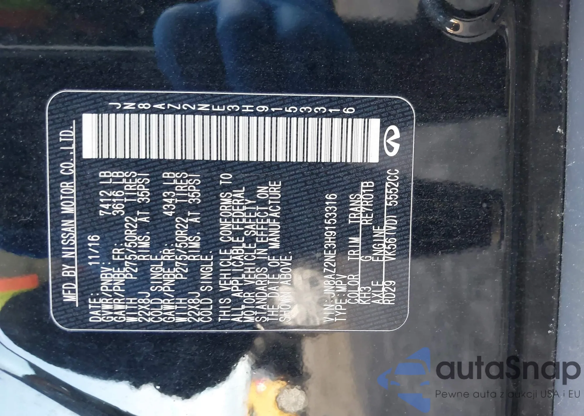 • VIN JN8AZ2NE3H9153316