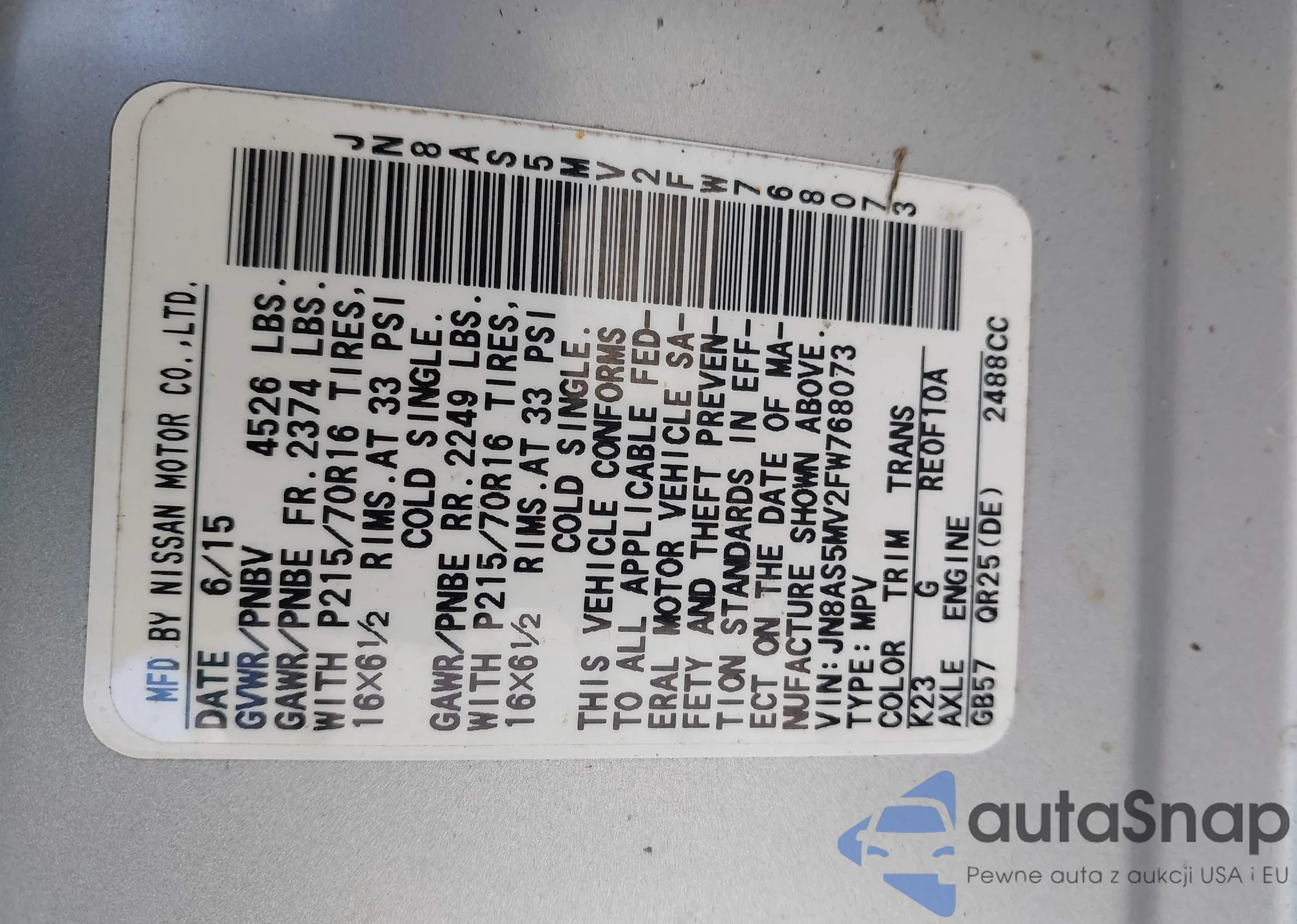 • VIN 1N4AL2AP7AN471074