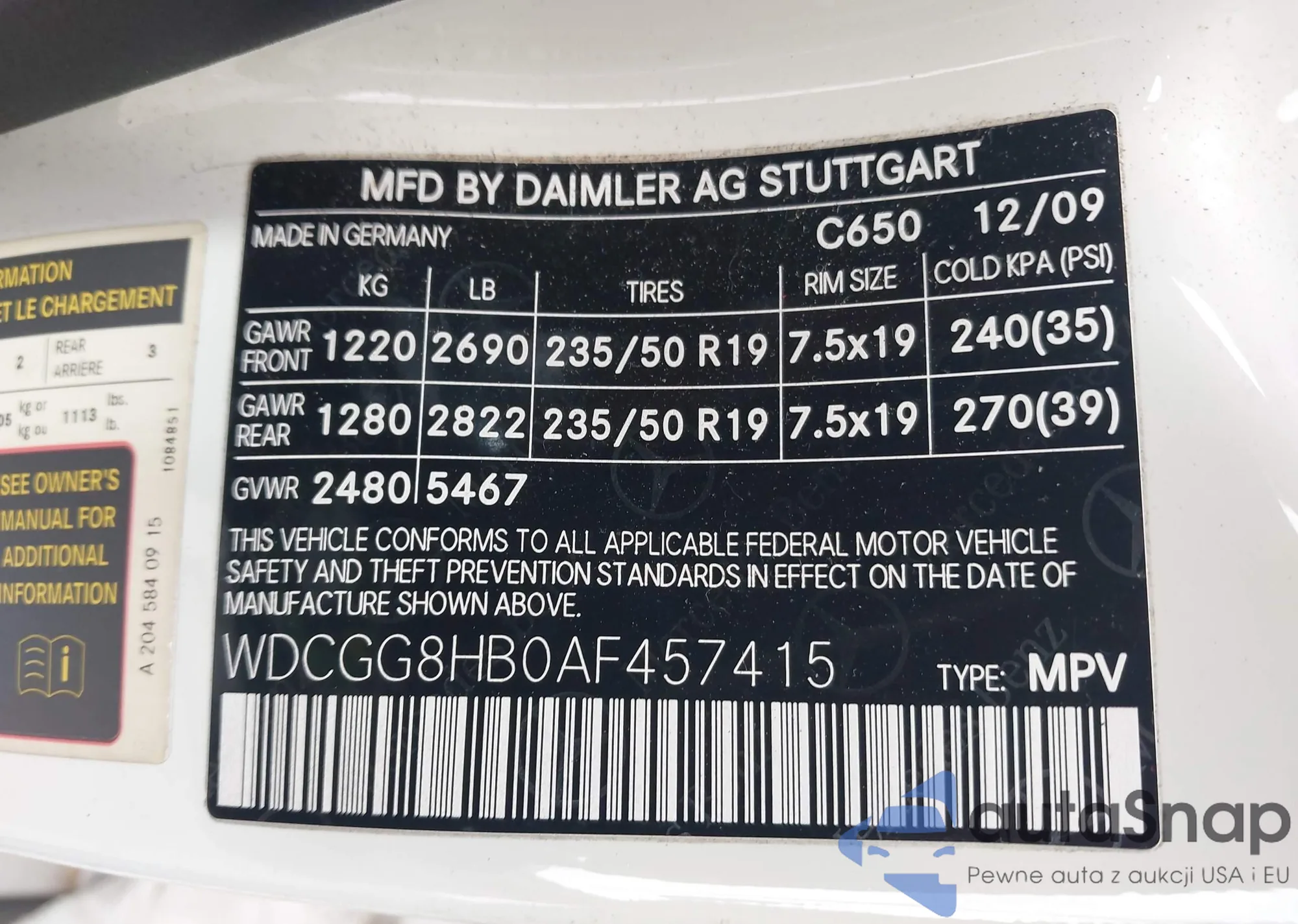 • VIN WDCGG8HB0AF457415