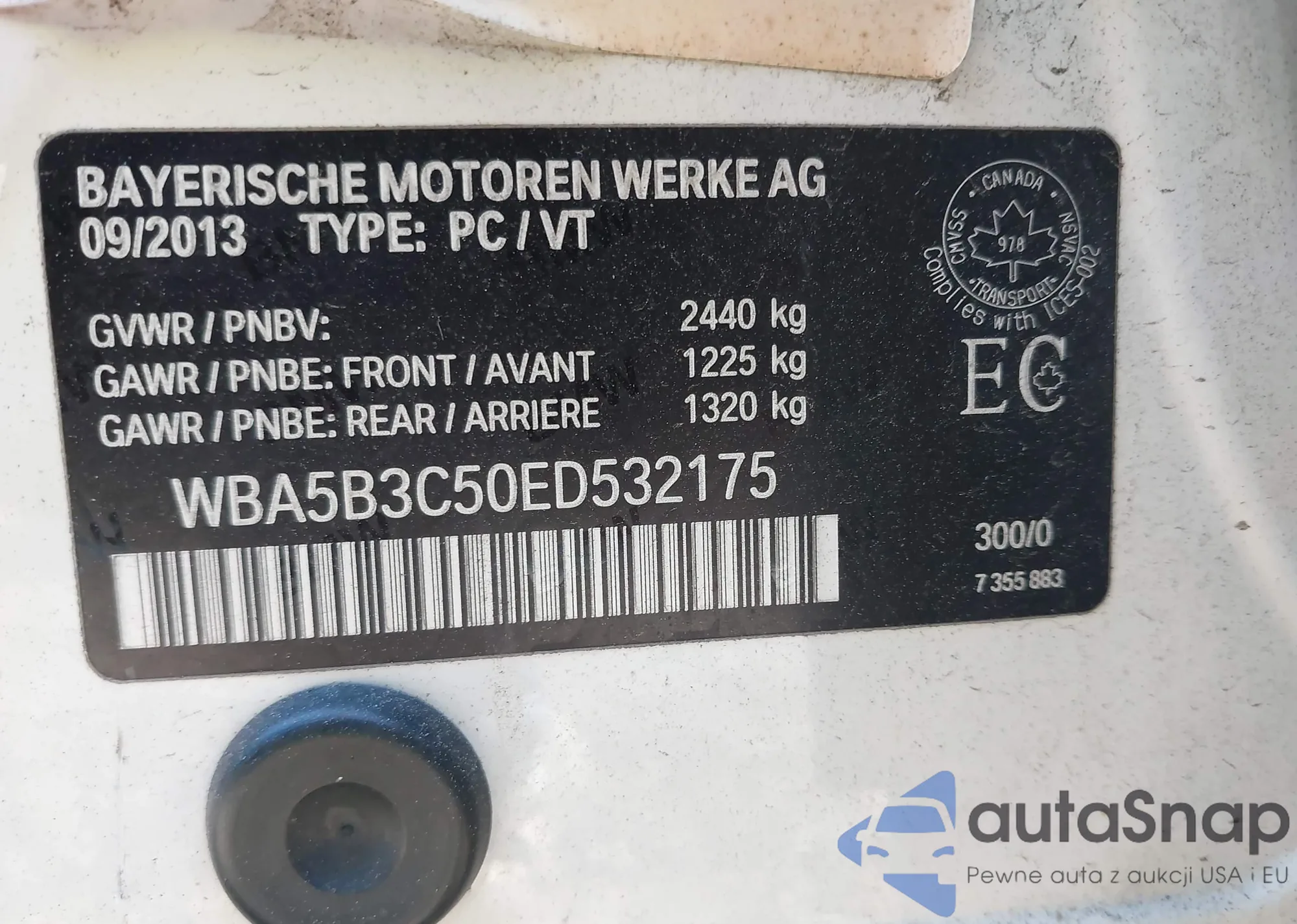 LOT: 43453329 VIN: WBA5B3C50ED532175