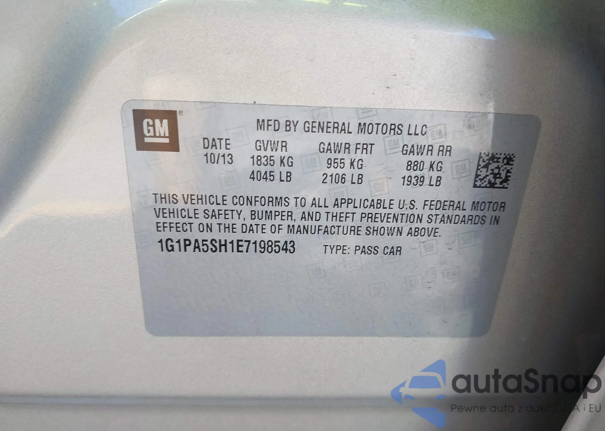 LOT: 43491124 VIN: 1G1PA5SH1E7198543