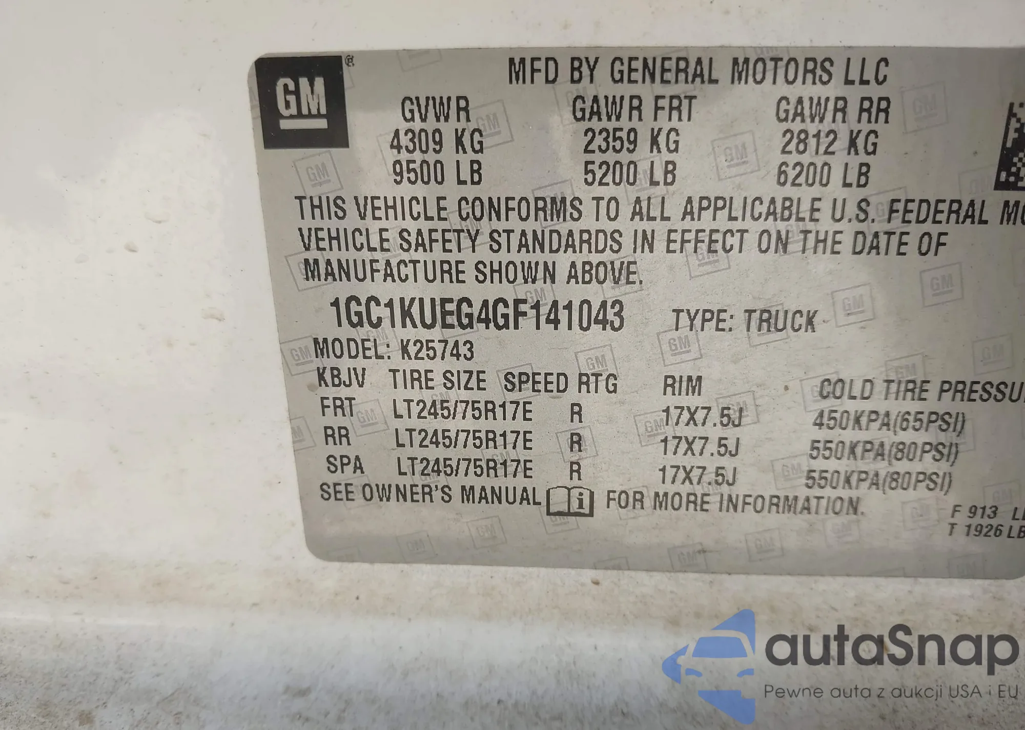 LOT: 43496741 VIN: 1GC1KUEG4GF141043