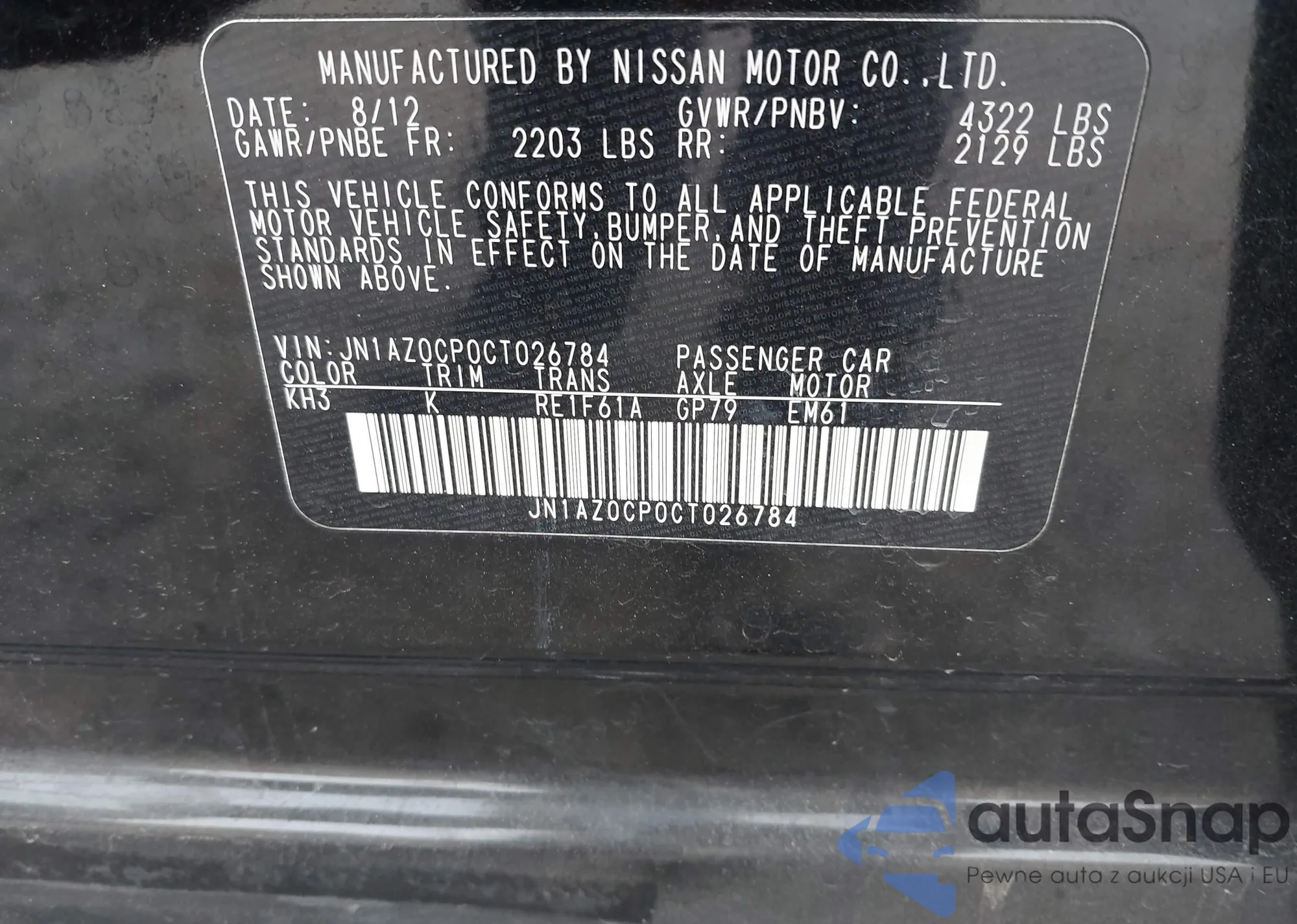 LOT: 43516750 VIN: JN1AZ0CP0CT026784