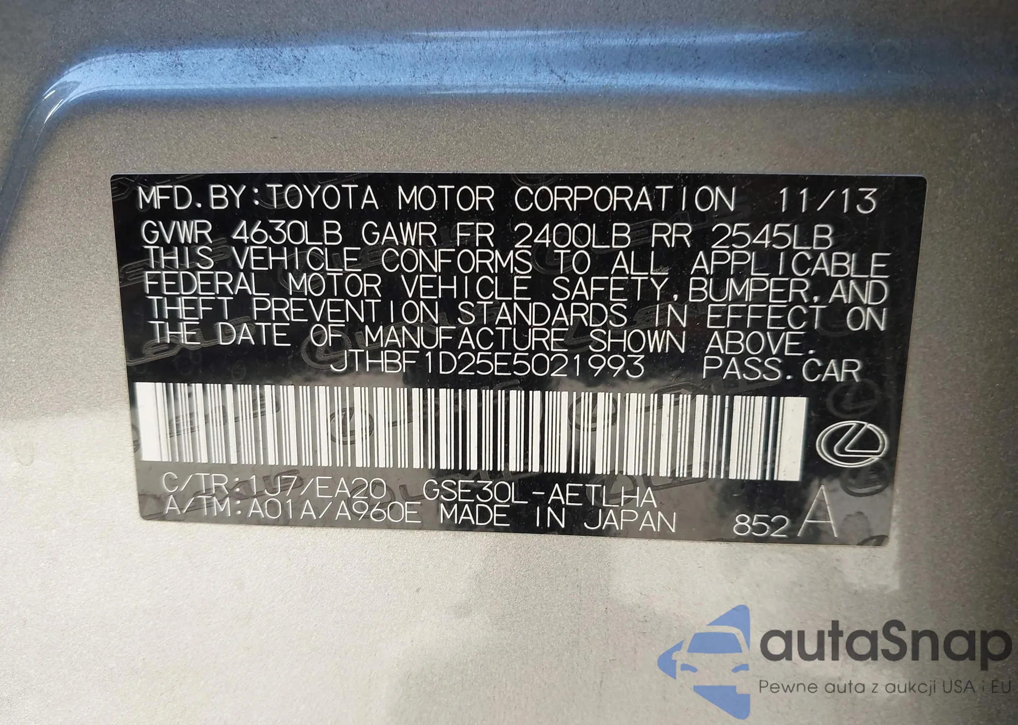 LOT: 43519959 VIN: JTHBF1D25E5021993